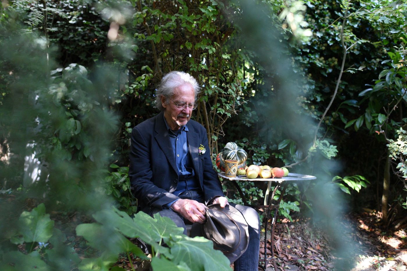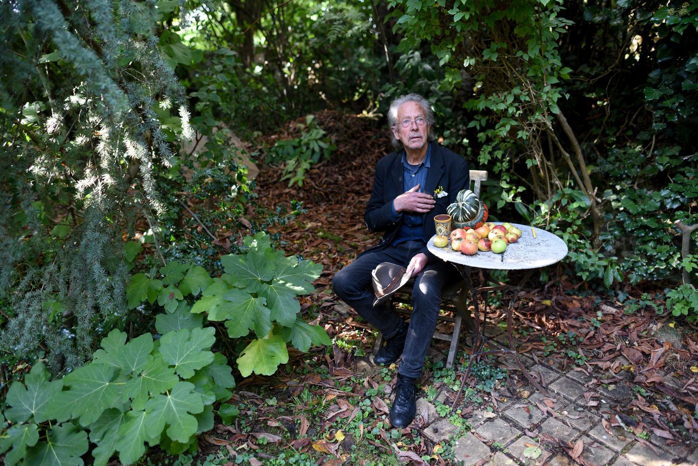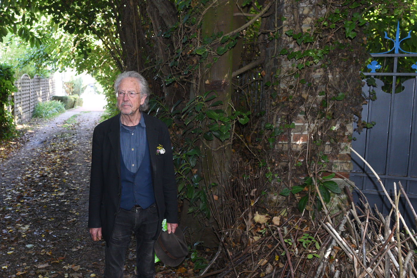 Portrait of Peter Handke in his garden in Chaville shortly after learning that he had been awarded the 2019 Nobel Prize for Literature.