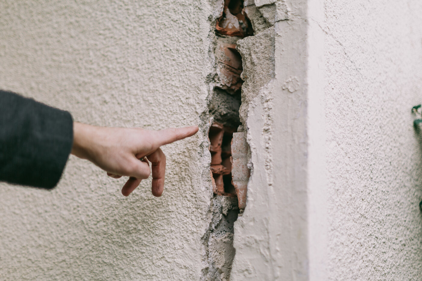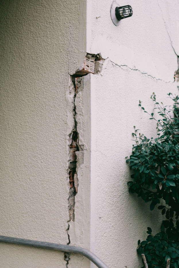 France, Le Mans - 18/03/2023. A couple from Le Mans saw multiple cracks covering the wall of their house a few years ago. With time, these cracks came to threaten the perennity of the house. The cause was the drought due to global warming and the poor foundations on a clay soil. These people spent several winters in the cold. They have since left and sold the house. The house will be demolished and a new one will be built on a healthier foundation.
