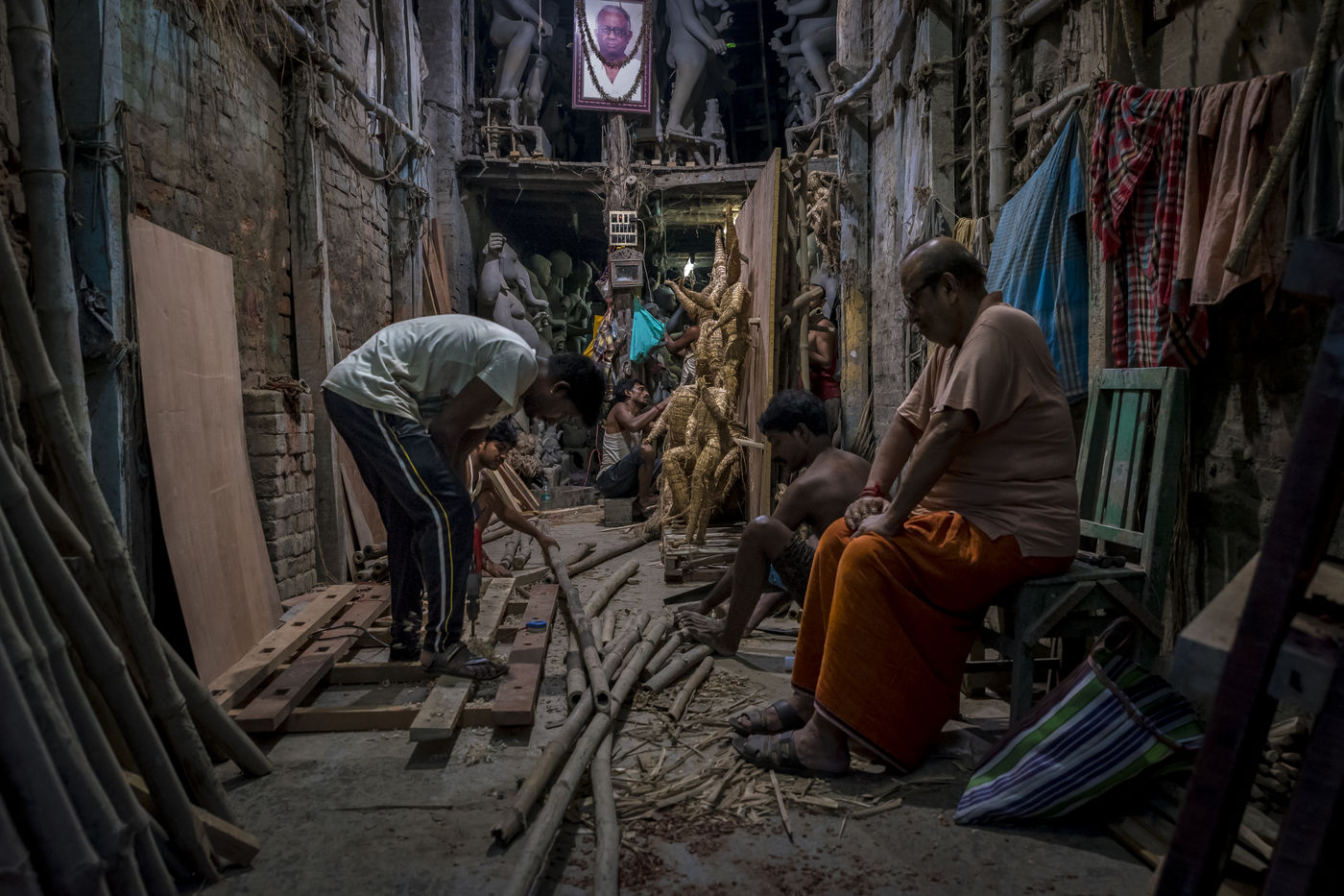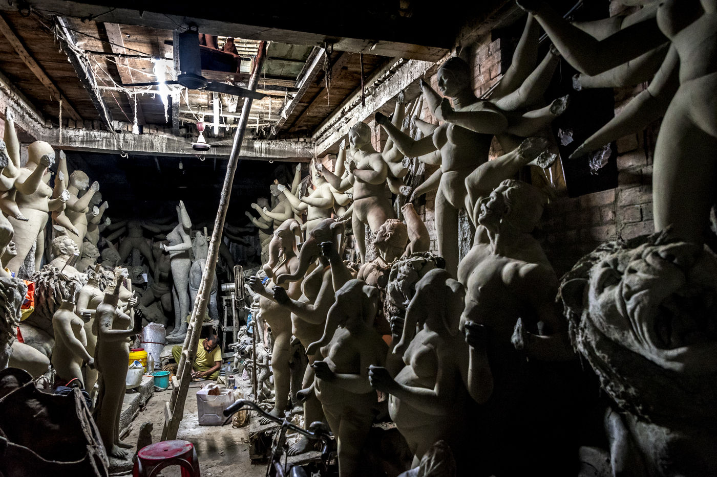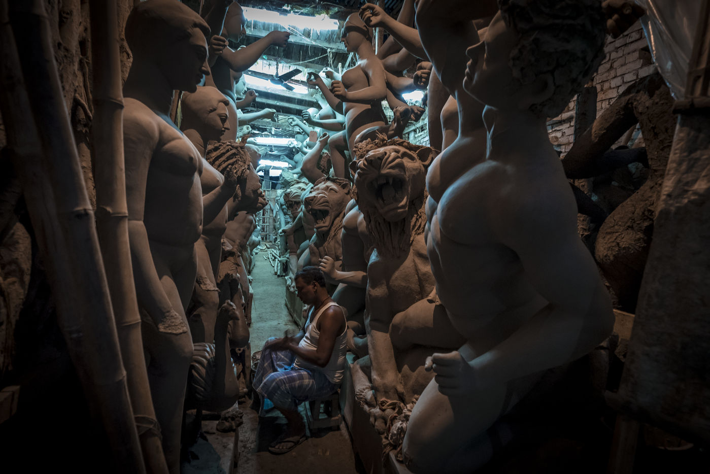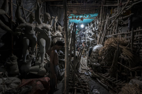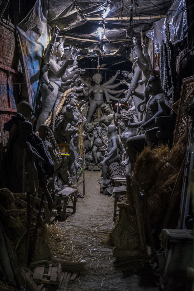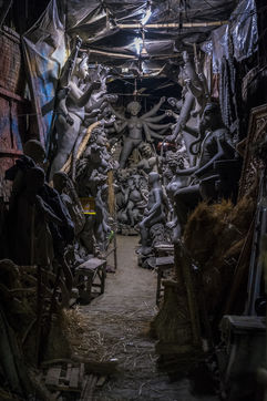 Le pittoresque quartier de plus de 300 ans dans le nord de Calcutta, le long de la riviere Hoogly, entre le Sovabazaar et Bagbazar se transforme en un centre anime juste avant le Durga Puja, qui est la plus grande fete magnum opus de 5 jours des Bengalis dans le monde entier. Kumartuli (Kumar-Potier et Tuli-Reglement), comme son nom l indique, est la localite des potiers, ou la famille des potiers (actuellement environ 150 familles) vit et travaille.