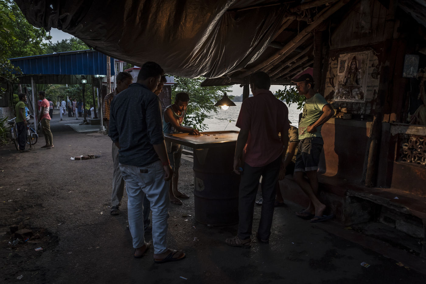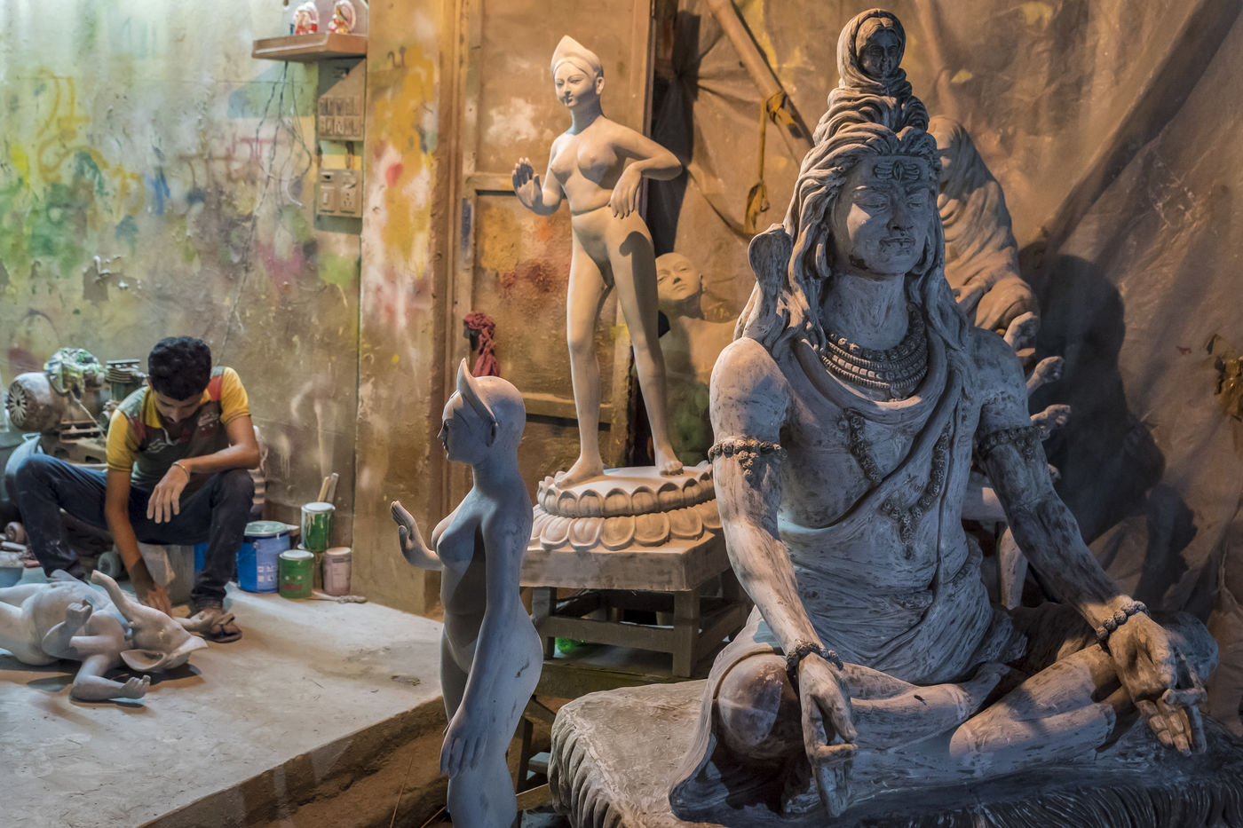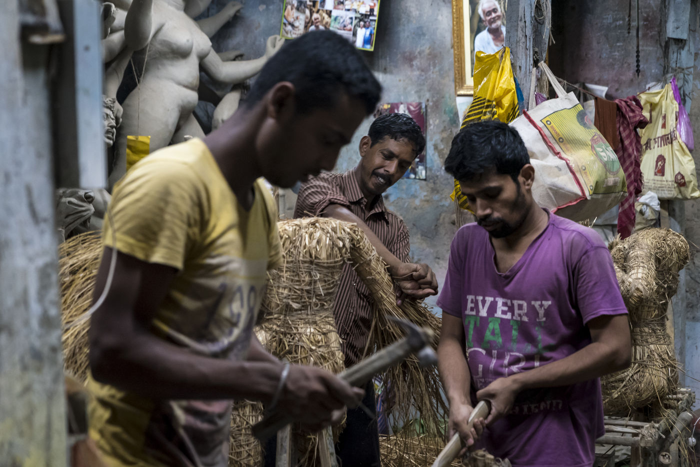 Le pittoresque quartier de plus de 300 ans dans le nord de Calcutta, le long de la riviere Hoogly, entre le Sovabazaar et Bagbazar se transforme en un centre anime juste avant le Durga Puja, qui est la plus grande fete magnum opus de 5 jours des Bengalis dans le monde entier. Kumartuli (Kumar-Potier et Tuli-Reglement), comme son nom l indique, est la localite des potiers, ou la famille des potiers (actuellement environ 150 familles) vit et travaille.