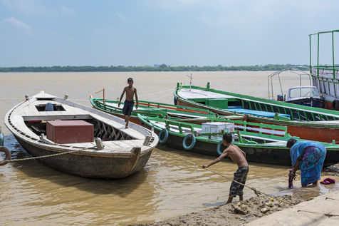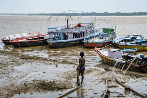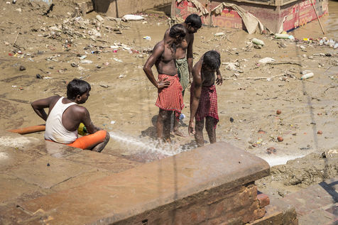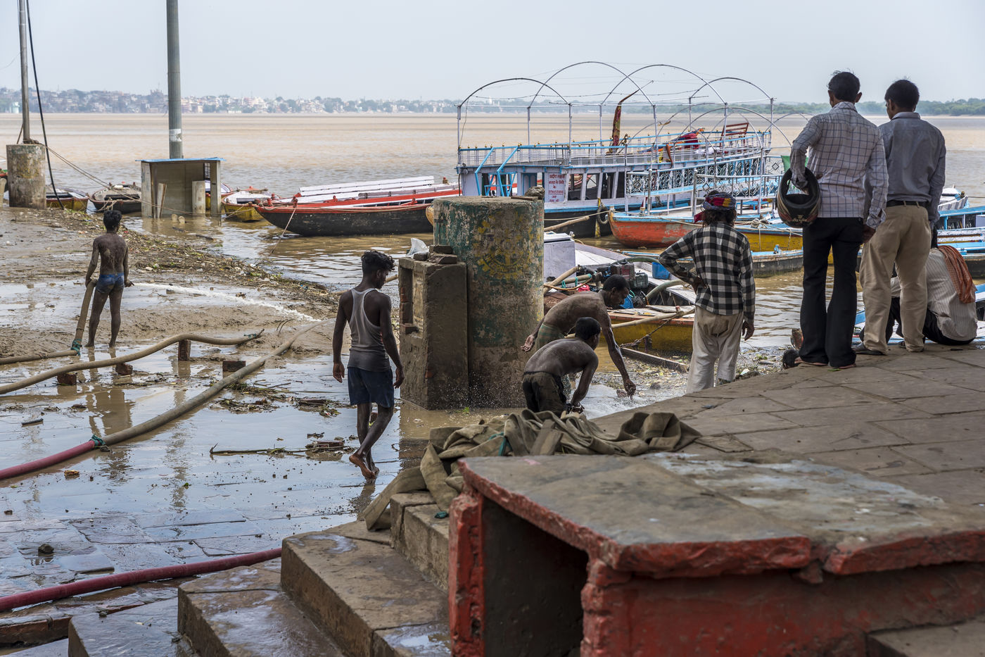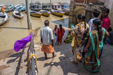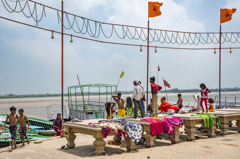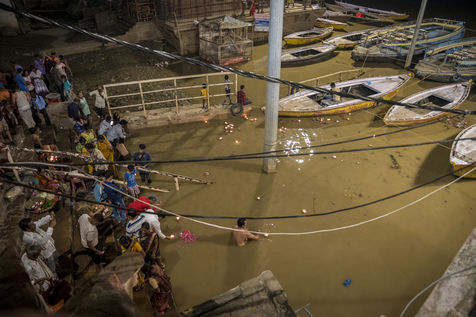 Les ghats de Varanasi apres l'inondation et le rituel sacre de Ganga Aarti