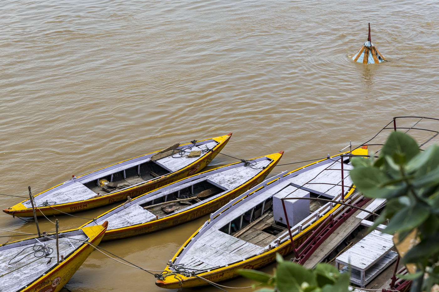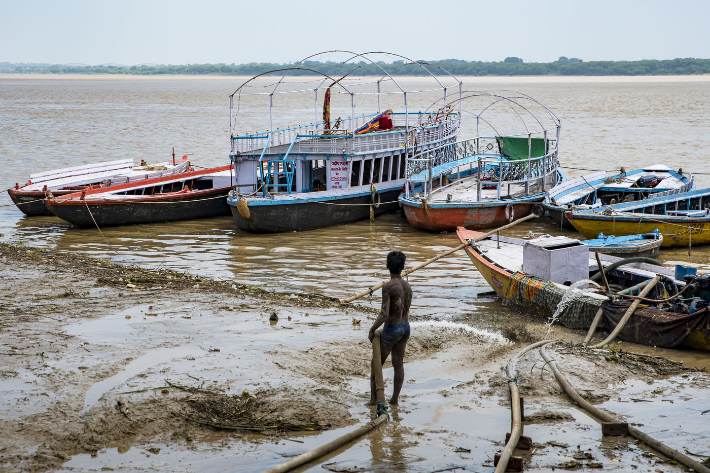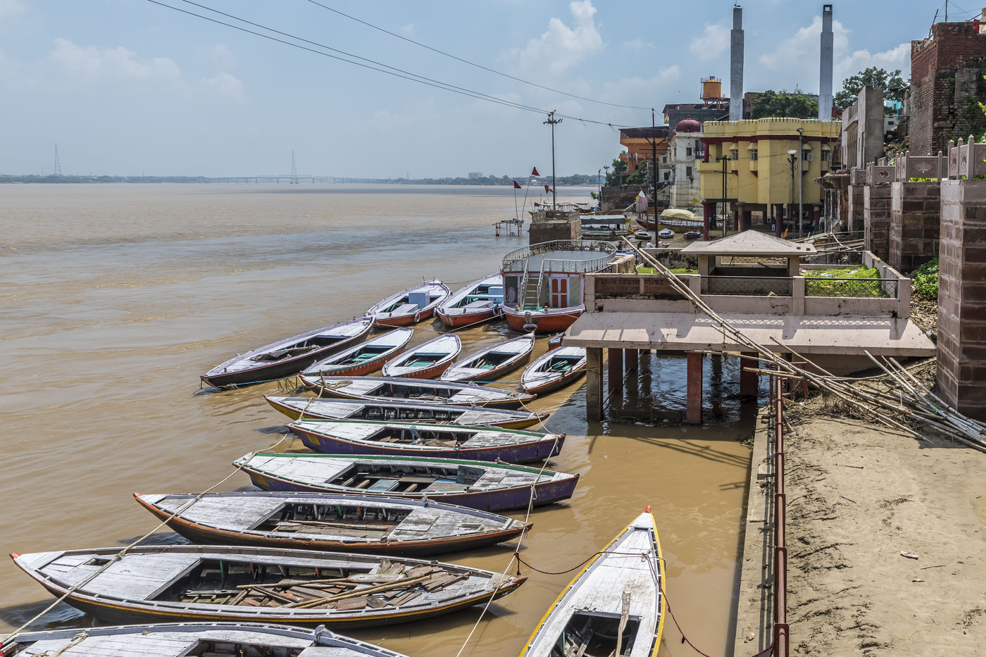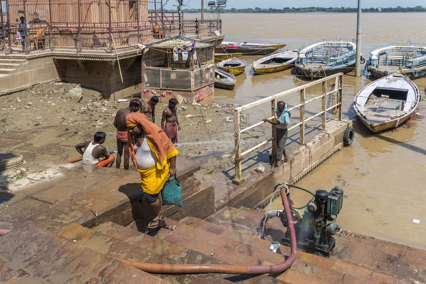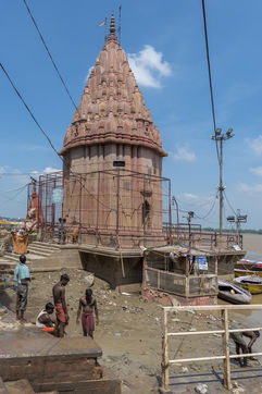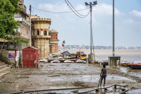 The ghats of Varanasi after flood and the holy ritual of Ganga Aarti