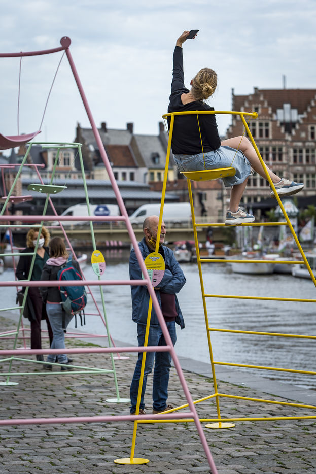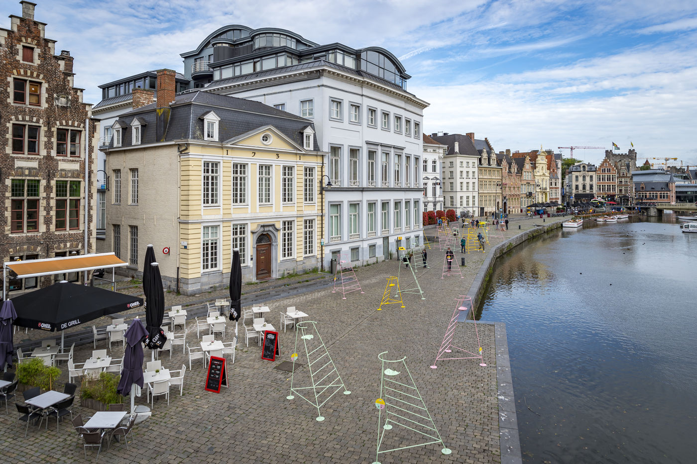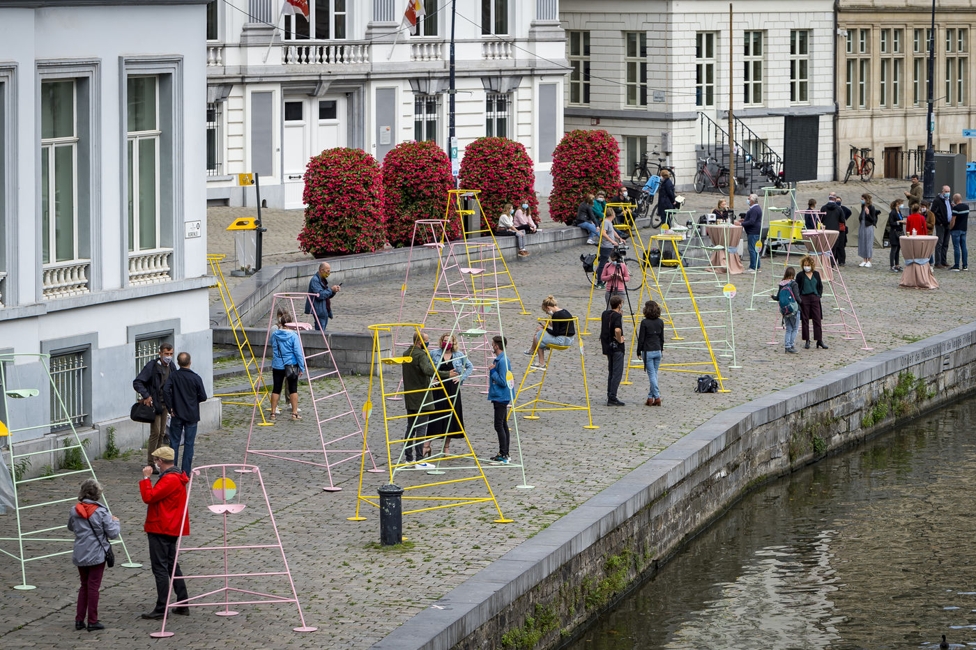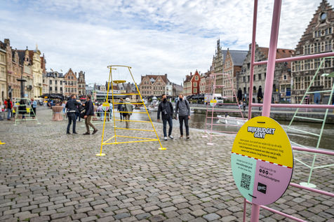 Le 4 septembre a eu lieu le lancement officiel du budget wijkbudget du quartier. Cinquante chaises colossales et colorees concues par Lien Van Deuren ont ete installees sur Graslei et Korenlei. L echevin de Participation Astrid De Bruycker a donne plus d informations sur le budget et le meme jour, tous les presidents se deplacent dans les onze quartiers qui seront discutes en premier. Les residents locaux peuvent les deplacer, s asseoir dessus et ainsi, de maniere symbolique, s inspirer d idees creatives pour leur quartier en regardant la ville sous differents angles differents. Dans le cadre du budget de quartier, la Ville de Gand met a disposition 6,25 millions d euros pour les 25 quartiers de Gand.