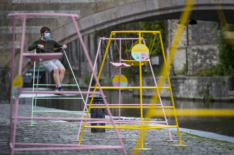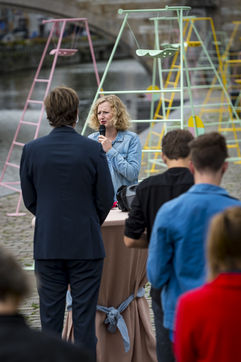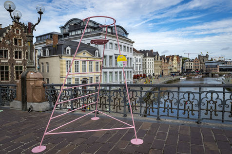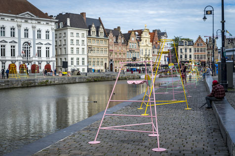 Official launch of the wijkbudget with the set up of fifty colossal colourful chairs in the Korenlei Graslei and Saint Michaels bridge