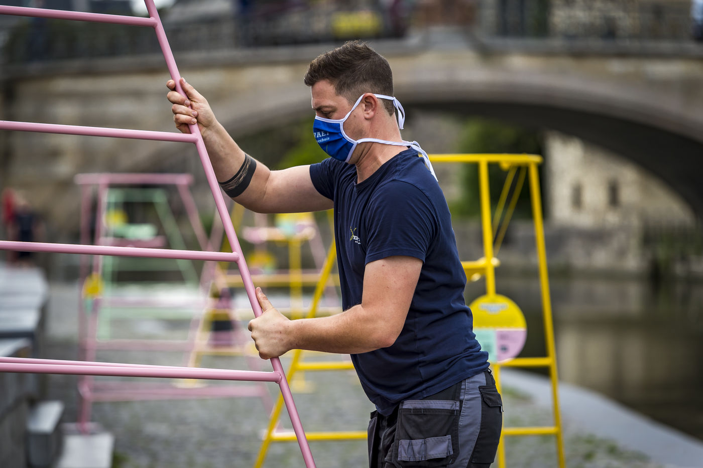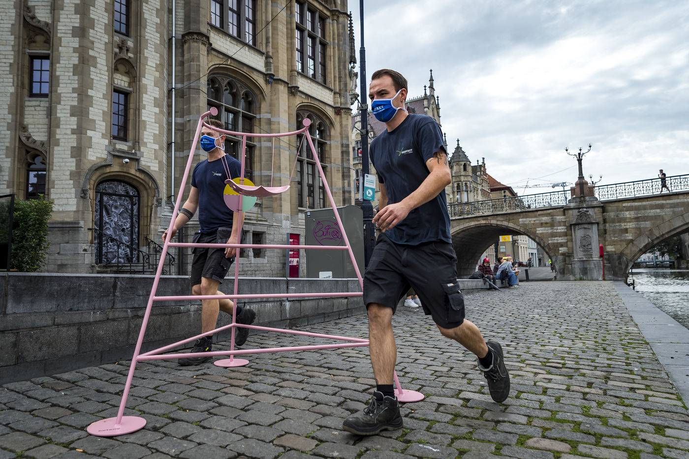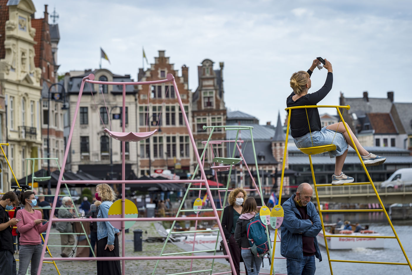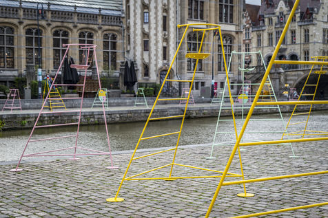 On 4th September happened the official launch of the wijkbudget the neighborhood budget. Fifty colossal, colorful chairs designed by Lien Van Deuren were be set up on Graslei and Korenlei. Alderman of Participation Astrid De Bruycker gave more information about the budget and on the same day, all chairs move to the eleven neighborhoods that will be discussed first. Local residents can move them, sit on them, and thus in a symbolic way gain inspiration for creative ideas for their neighborhood looking the city from various new different angles. Within the framework of the neighborhood budget, the City of Ghent is making 6.25 million euros available for the 25 Ghent neighborhoods.