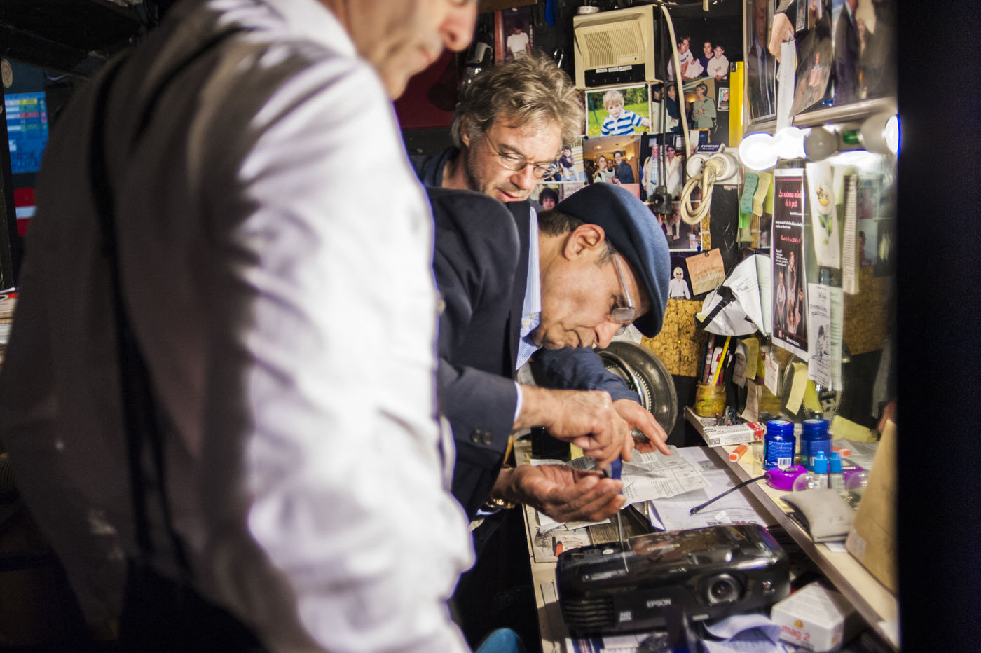 Ici l'administrateur est aussi costumier, la caissière couturière, les acteurs habilleurs, maquilleurs et techniciens. La troupe n'hésite d'ailleurs pas à traverser, toute la soirée, le hall du vieil immeuble du quartier latin pour aller des loges à la scène.