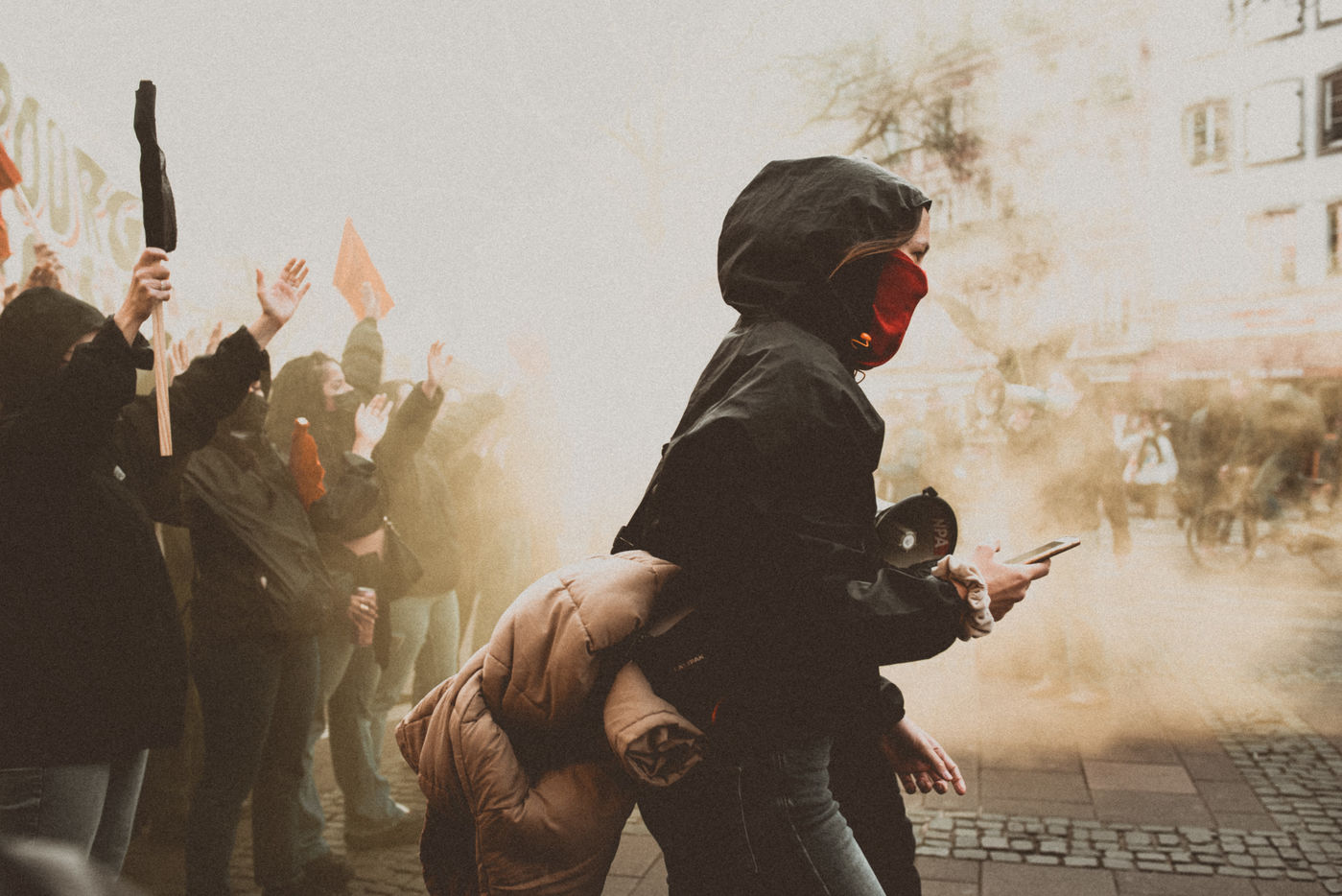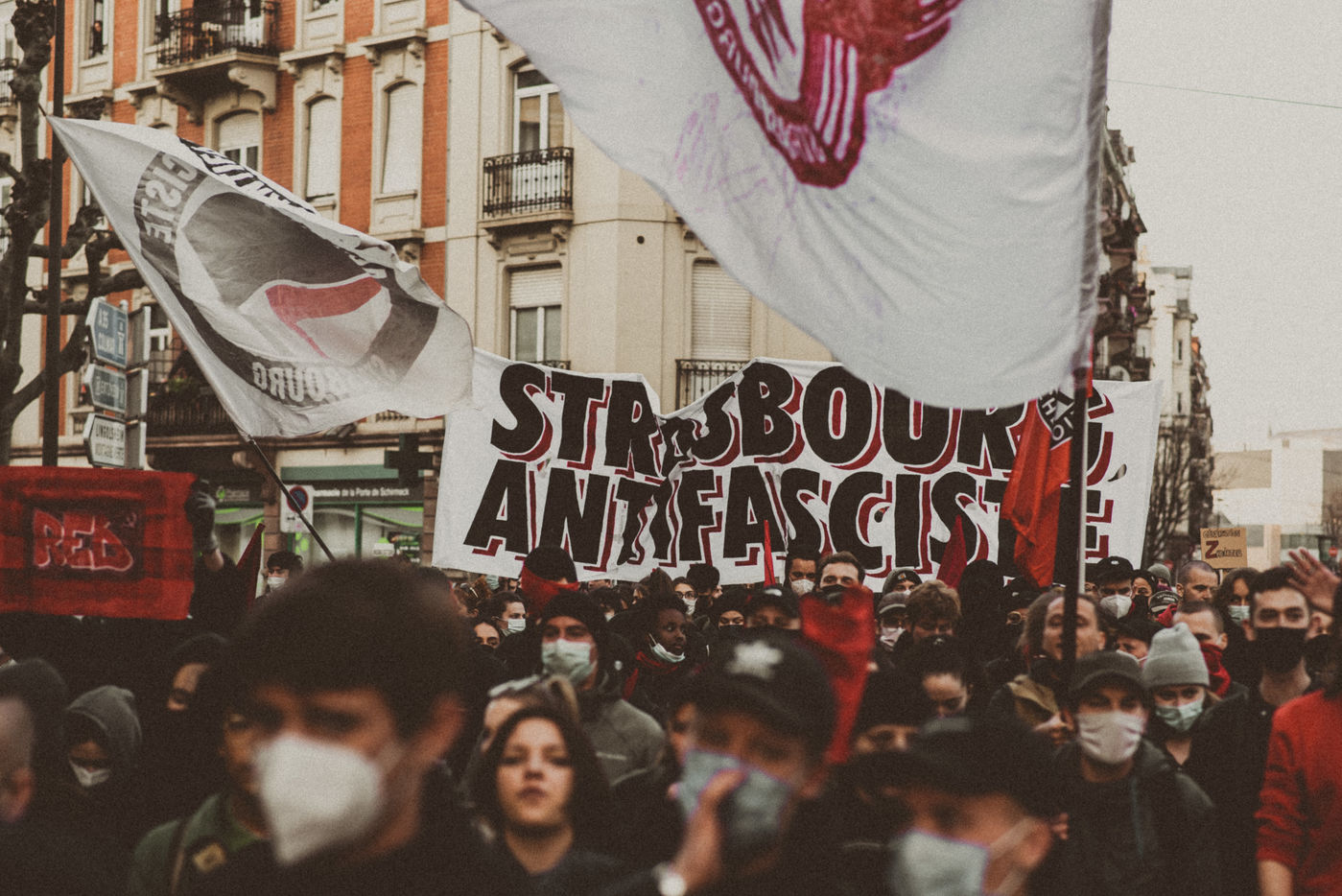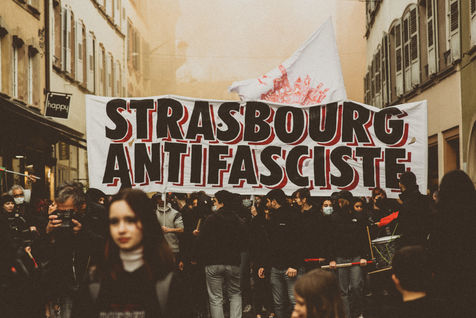 France, Strasbourg, 2022-03-12. About 700 people demonstrated against the extreme right in Strasbourg. Photography by Mathilde Cybulski / Hans Lucas.