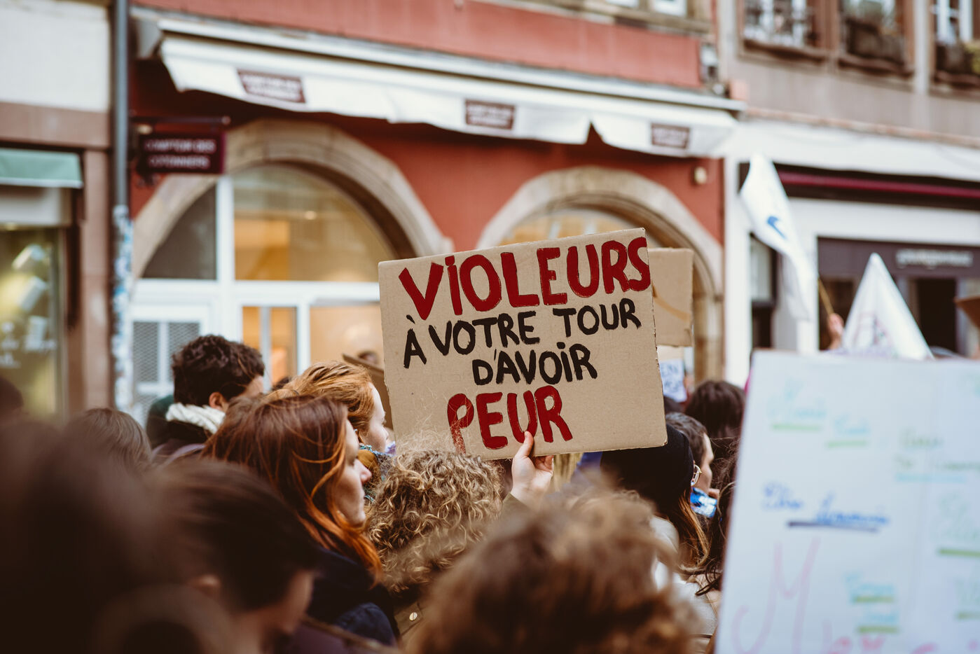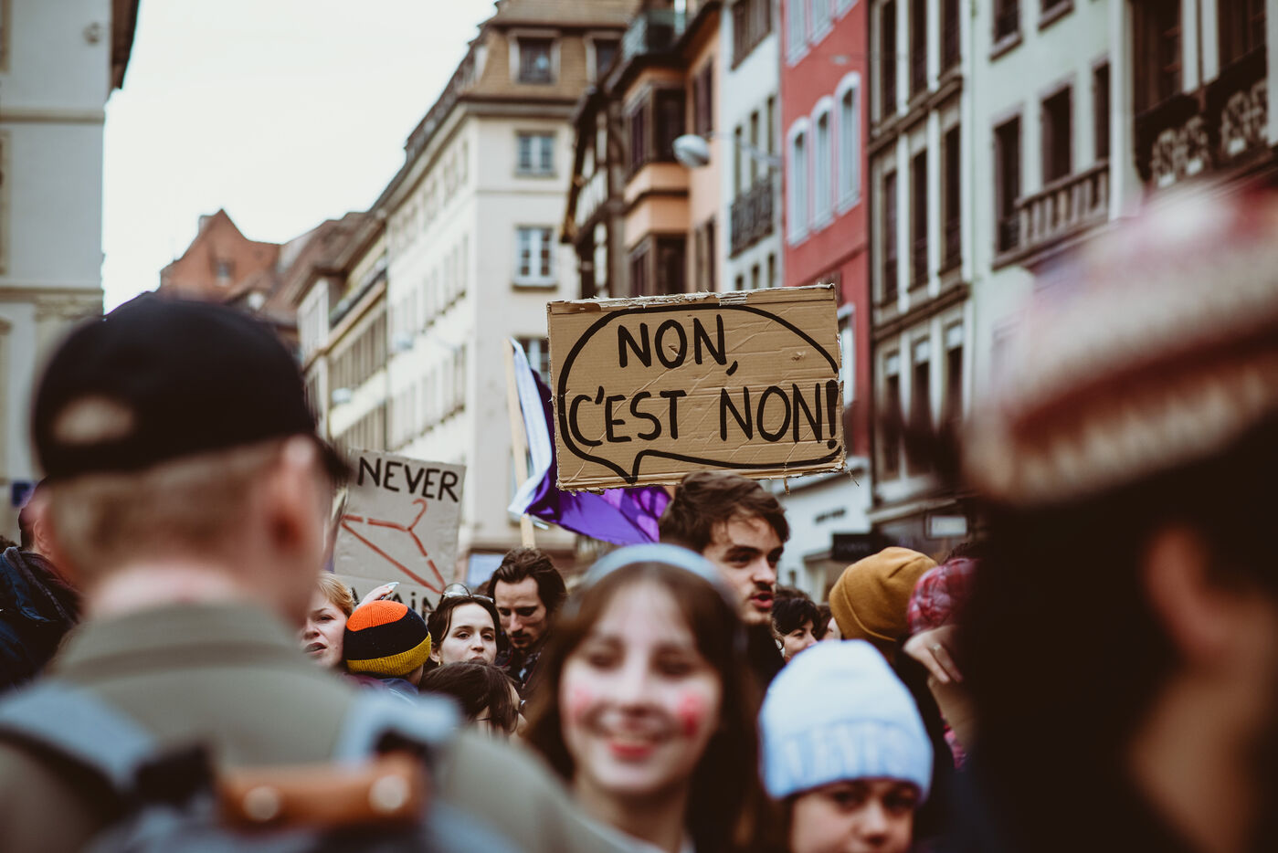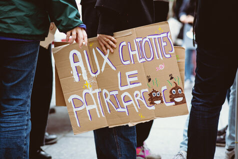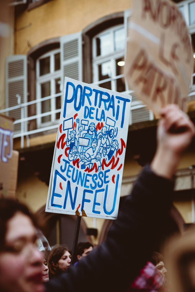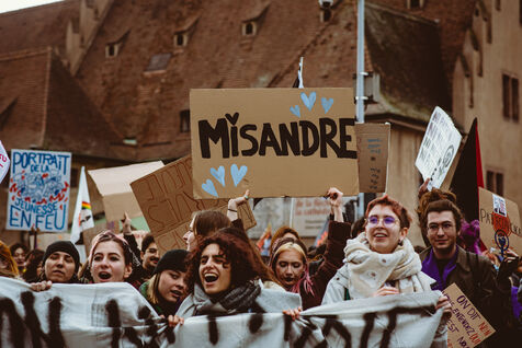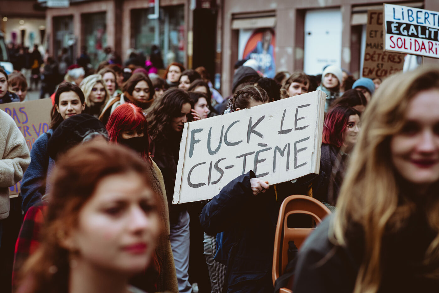 France, Strasbourg, 03-08-2023. Feminist march on the occasion of the day of struggle for the right of women. More than 2000 people marched. Head of the procession in mixed gender, followed by a mixed procession and then by trade unionists. Photo Mathilde Cybulski / Hans Lucas.