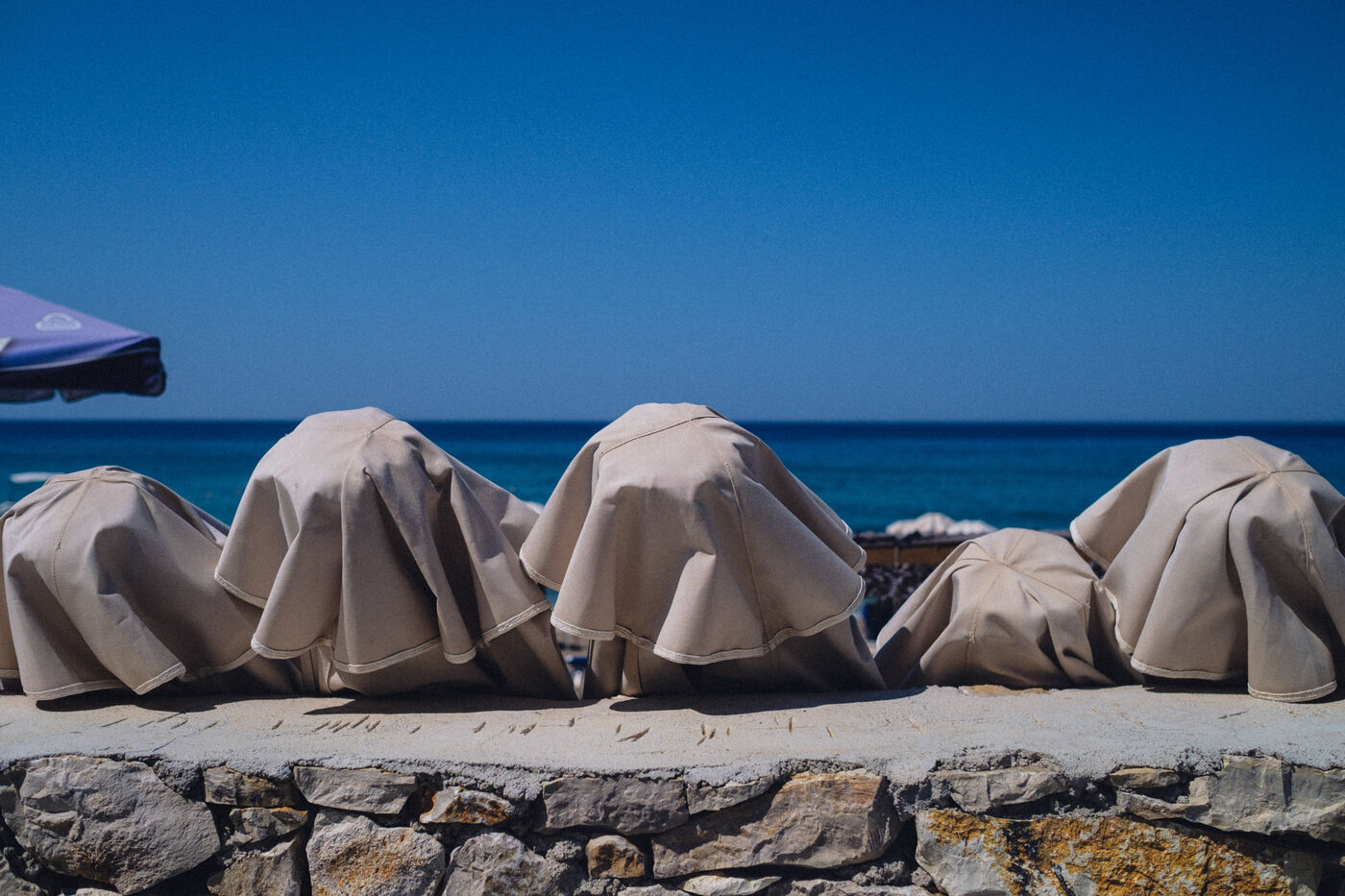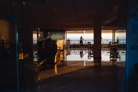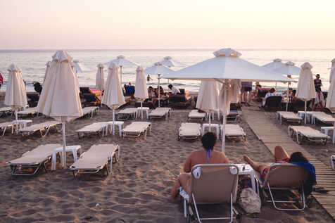 Grece, Corfou, Aout 2023. Immersion estivale sur l'ile de Corfou, bordée par la mer Adriatique et la mer Ionienne, en pleine saison touristique. Son patrimoine culturel riche, herité de plusieurs années de domination Française, vénitienne et Britannique contraste avec ses scènes de vie typiques des stations balnéaires très fréquentées. Photo Mathilde Cybulski / Hans Lucas.
