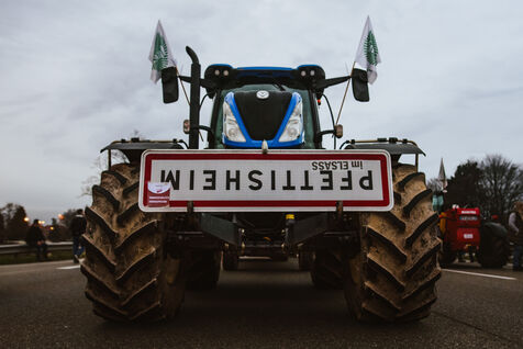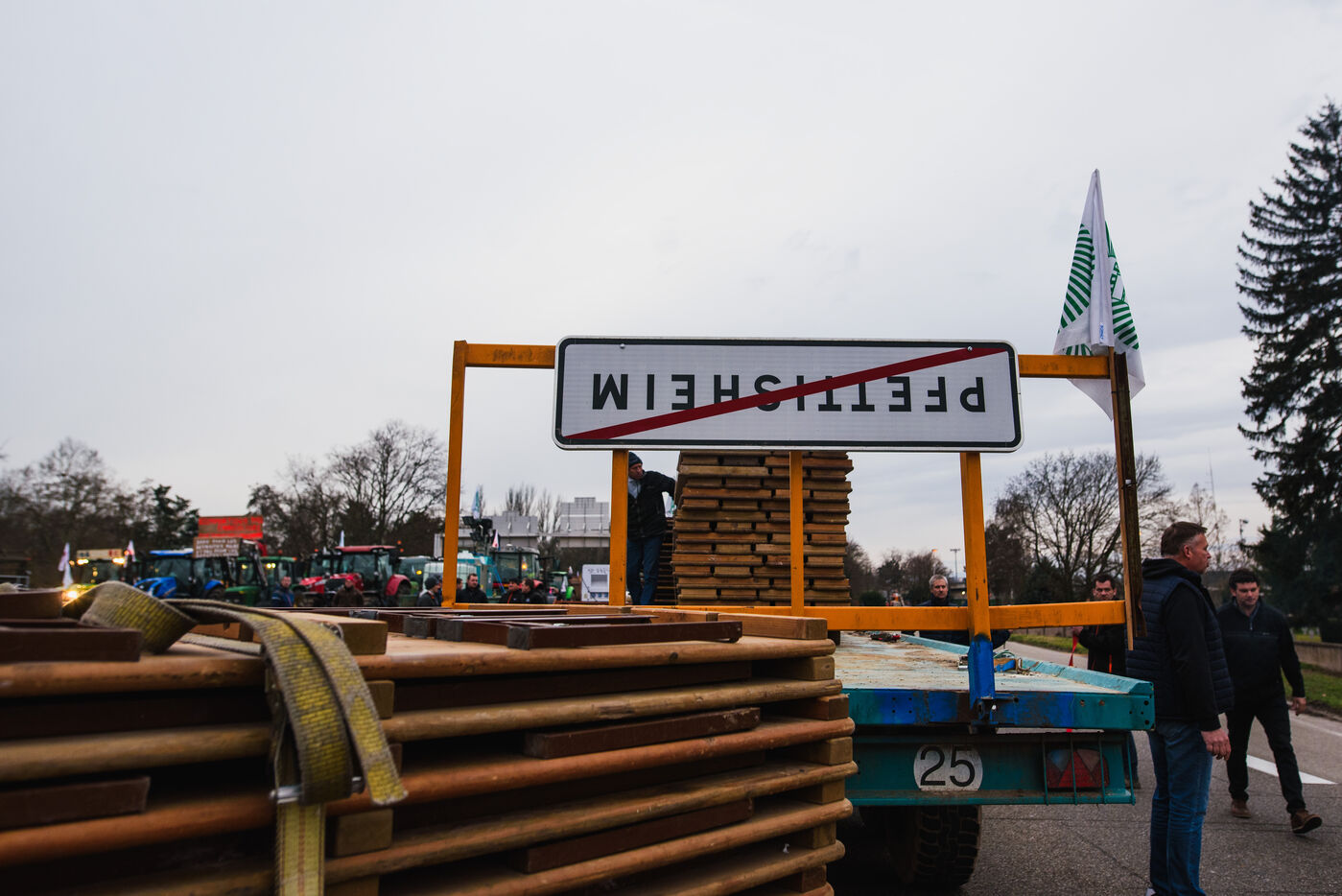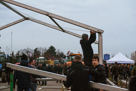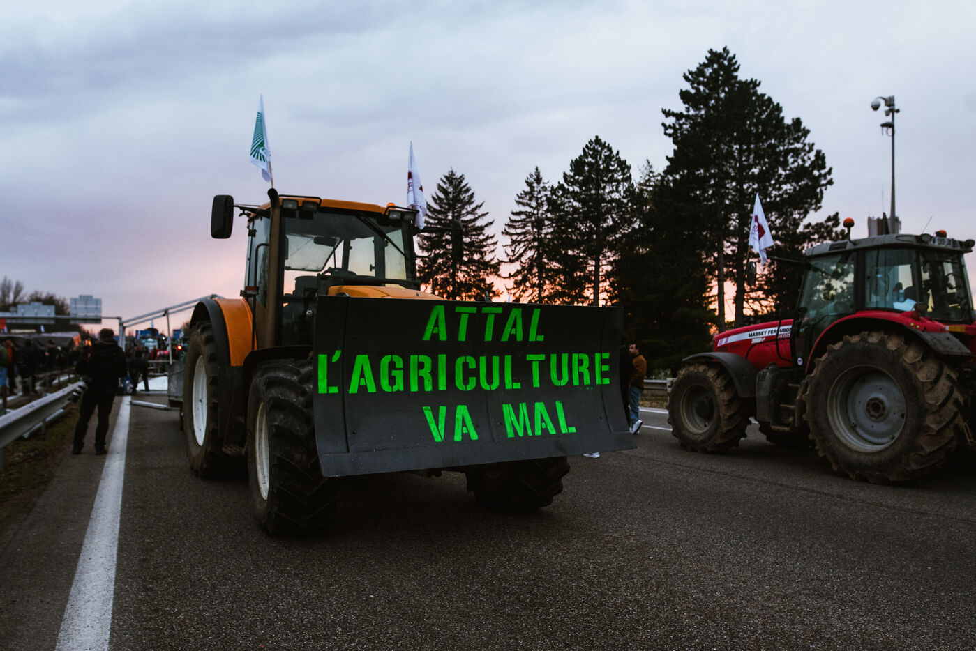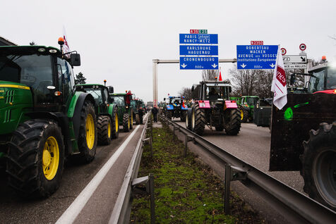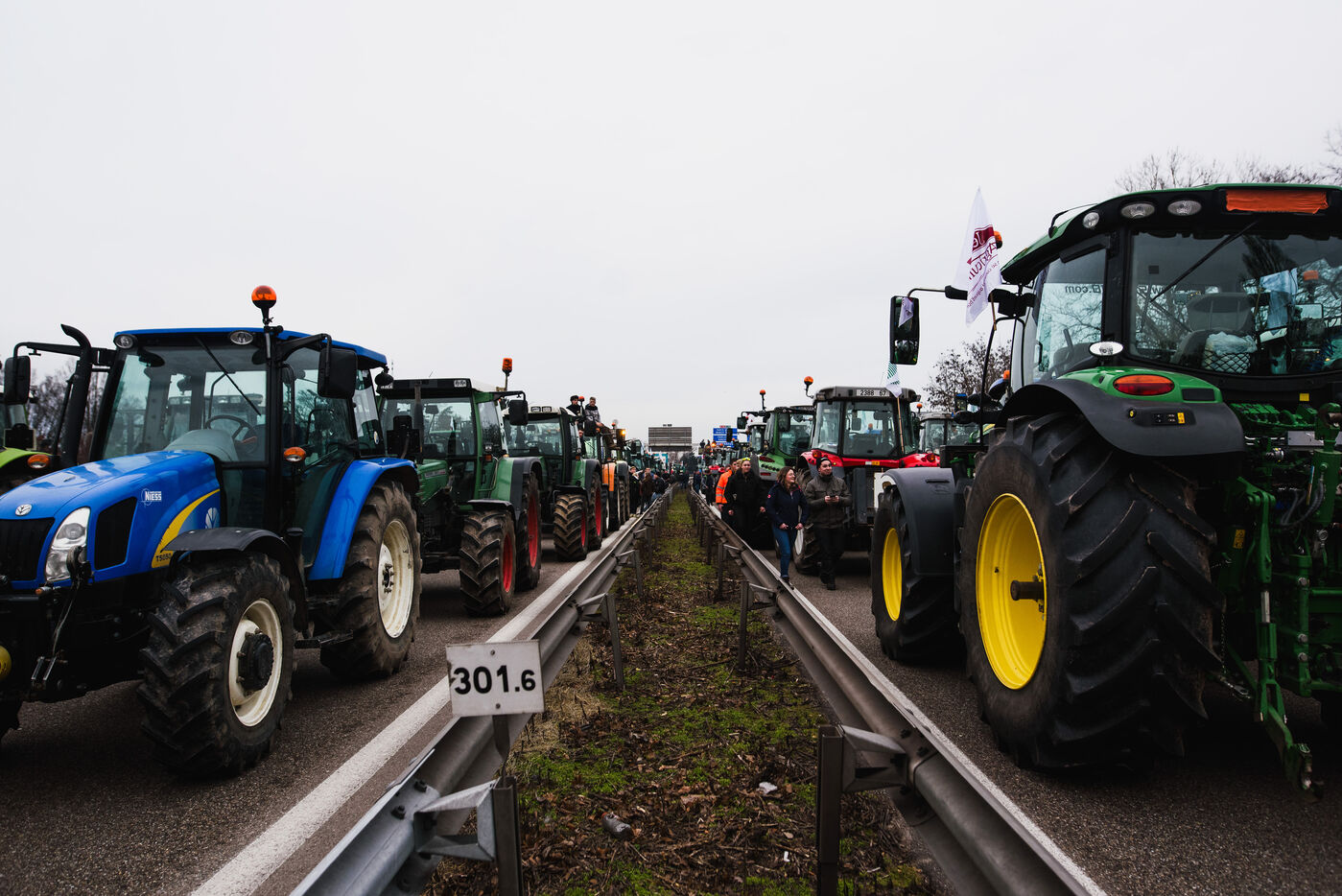 France, Strasbourg, 30-01-24. Farmers block the M35 again. Even more numerous than at the first blockade, several hundred farmers block the freeway with their tractors and intend to stay overnight. Photo Mathilde Cybulski / Hans Lucas.