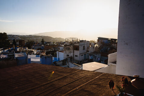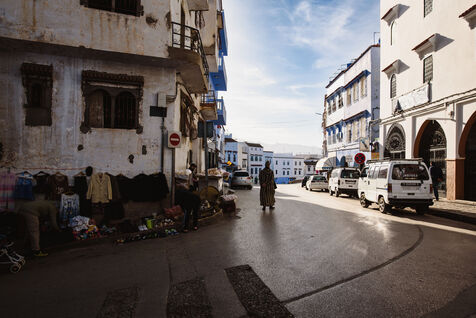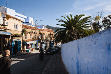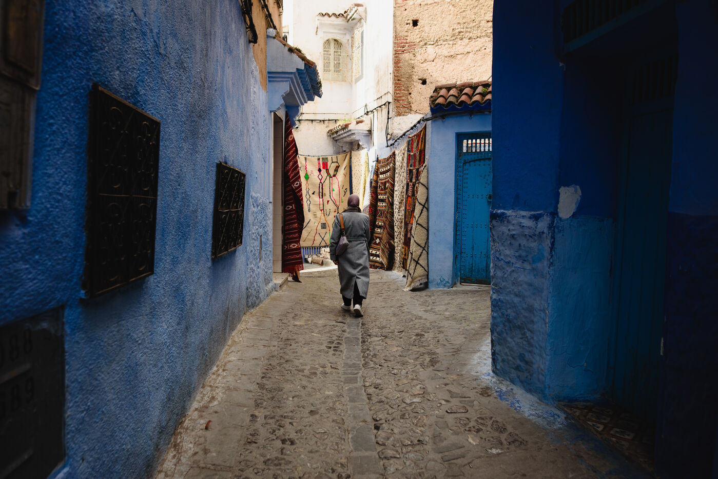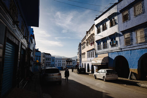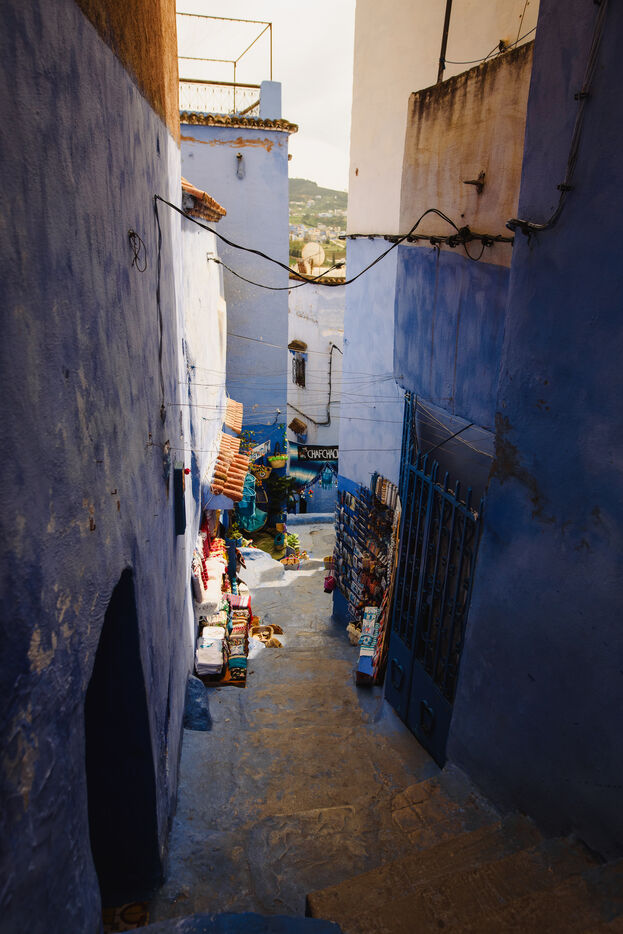 Maroc, Chefchaouen, 09-02-24. Chefchaouen, appelée aussi la ville bleue, se niche dans les hauteurs des montagnes du Rif, dans le Nord-Est du Maroc. Entre ses facades peintes d'un camaieu de bleu, les ateliers de tissages et les nombreux chats qu'on y croise, Chaouen dégage une ambiance quasi onirique. Sa médina très charismatique fait le bonheur des touristes, qu'on croise bien souvent l'appareil photo à la main.