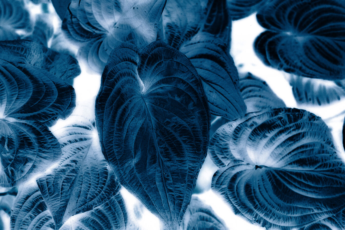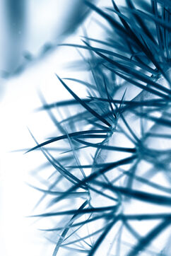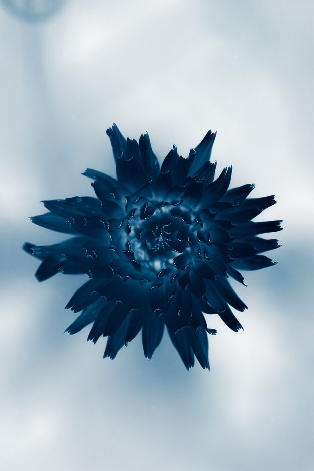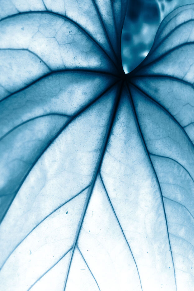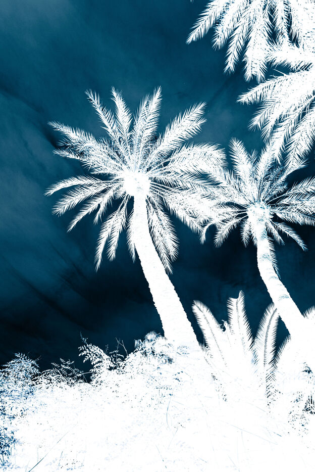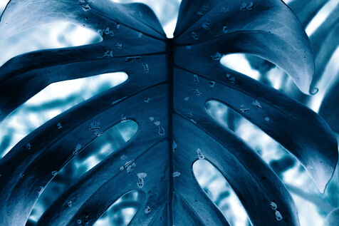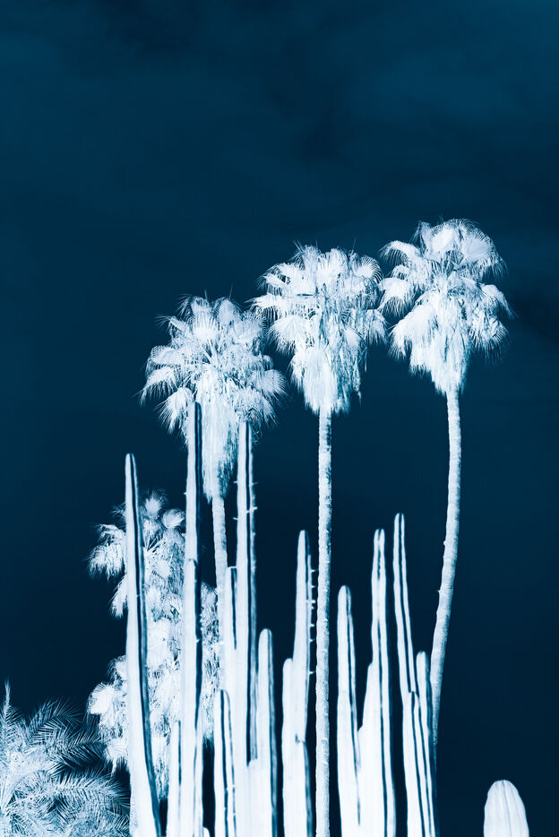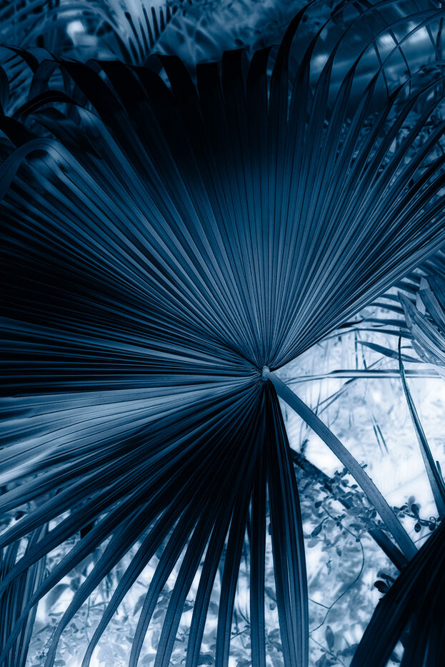 Vues azurées du jardin botanique de l'université de Strasbourg et du jardin Majorelle de Marrakech, printemps 2024. Cette série propose une vision artistique et personnelle de l'intimité de ces mondes végétaux.