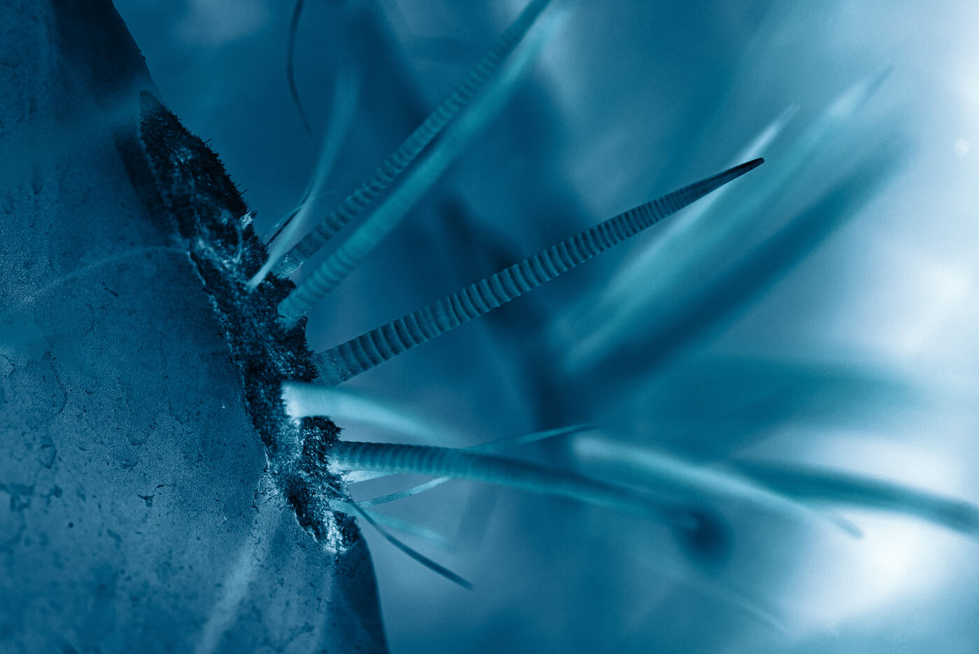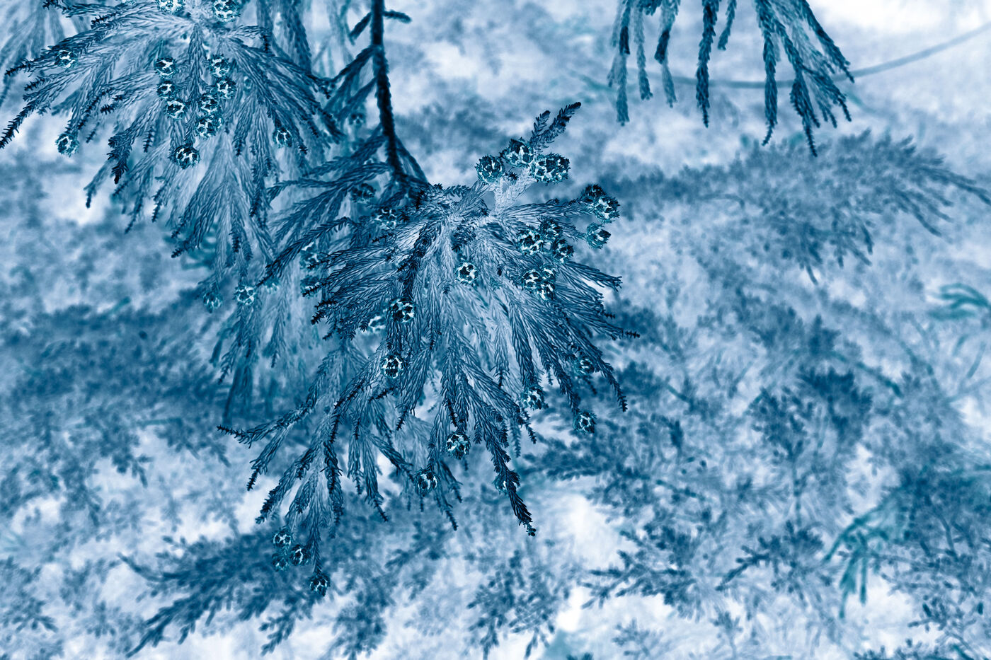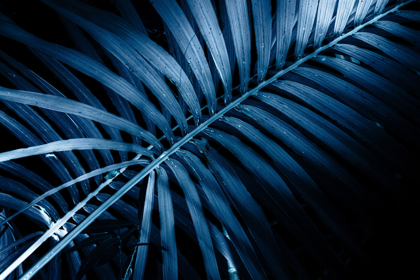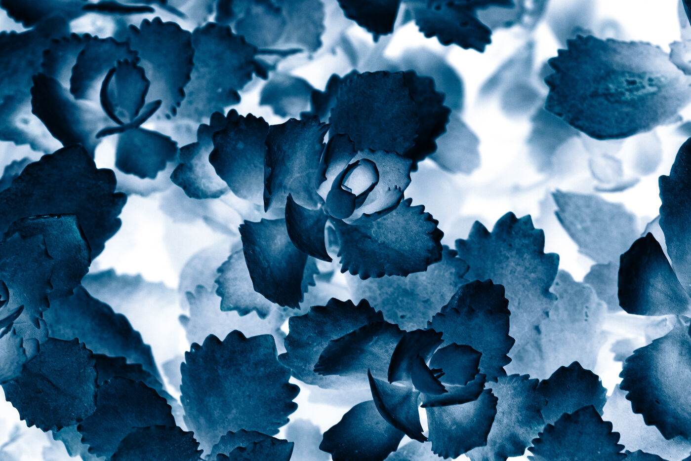 Vues azurées du jardin botanique de l'université de Strasbourg et du jardin Majorelle de Marrakech, printemps 2024. Cette série propose une vision artistique et personnelle de l'intimité de ces mondes végétaux.