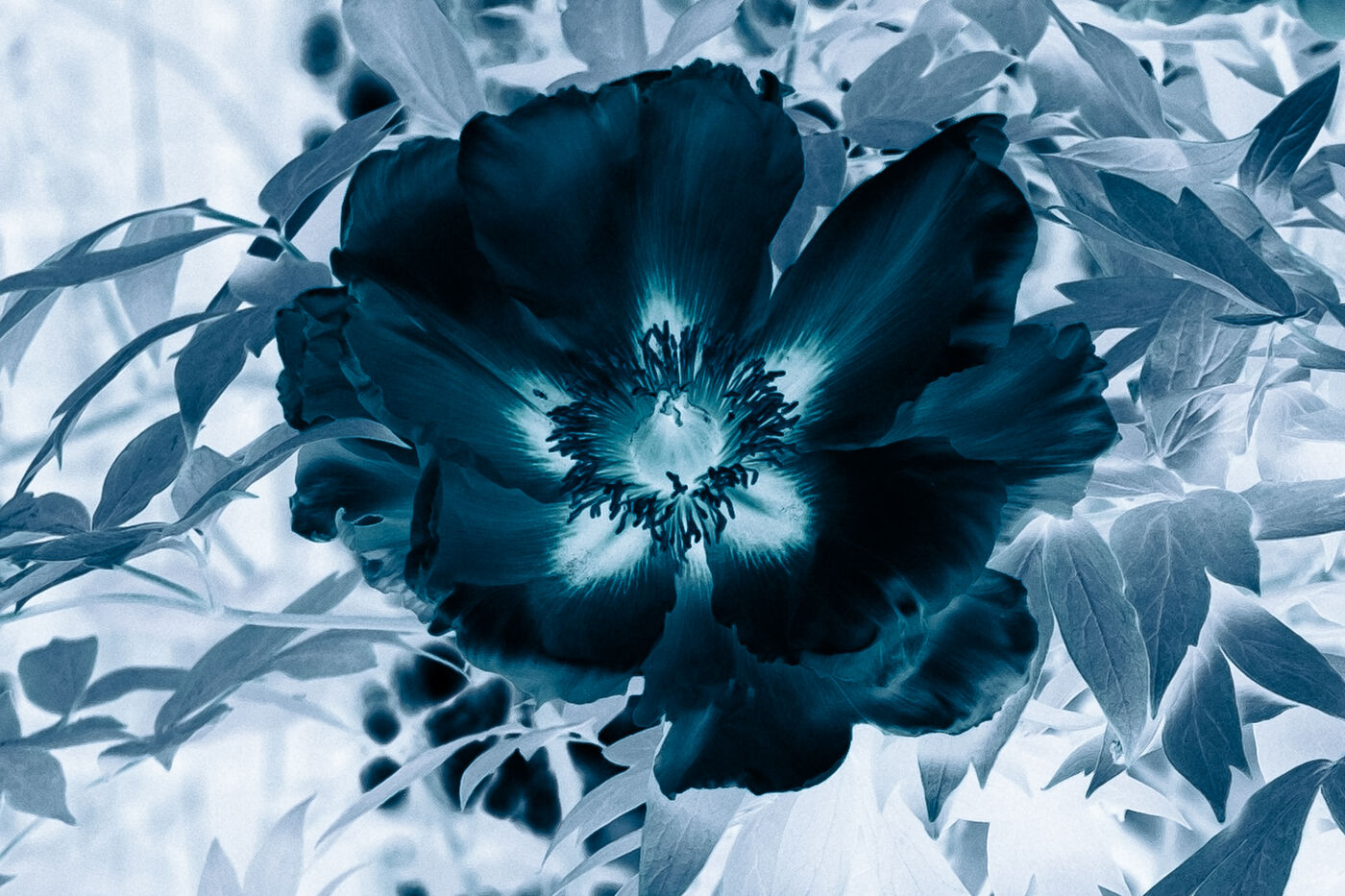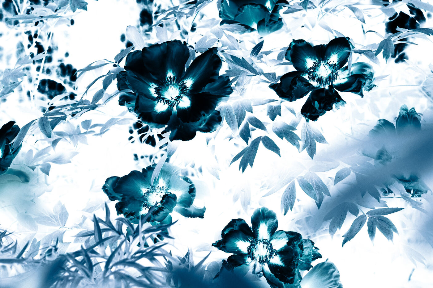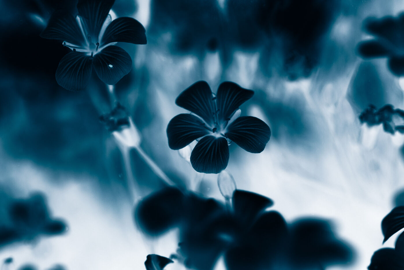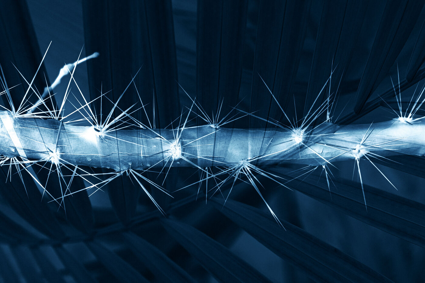 Vues azurées du jardin botanique de l'université de Strasbourg et du jardin Majorelle de Marrakech, printemps 2024. Cette série propose une vision artistique et personnelle de l'intimité de ces mondes végétaux.
