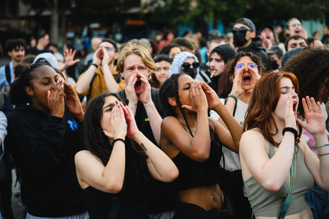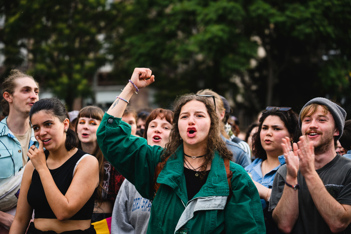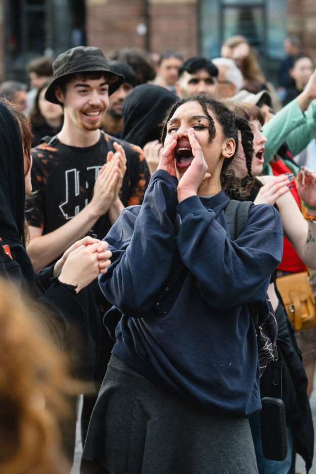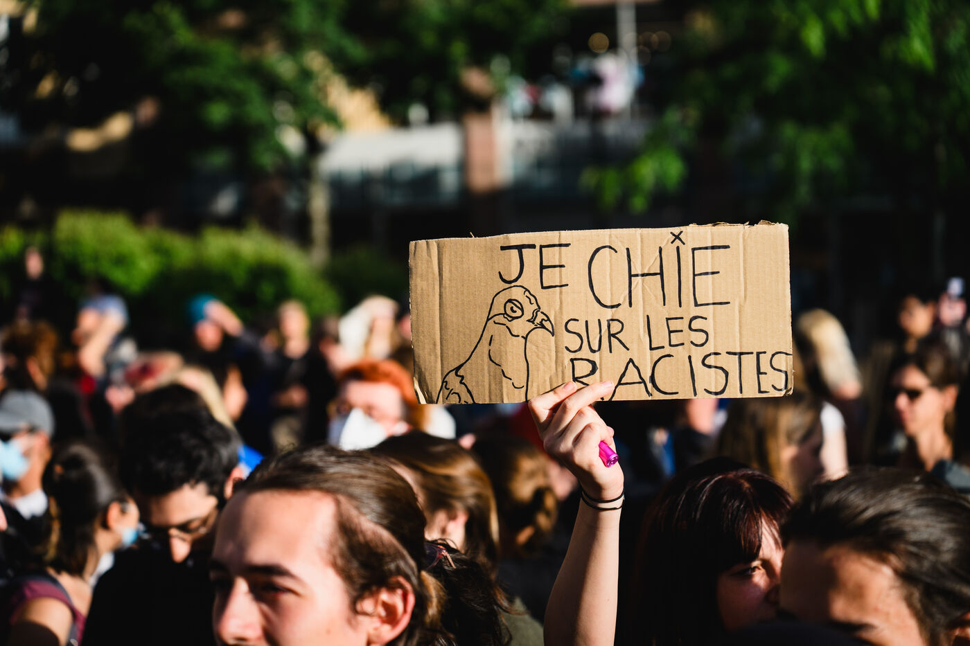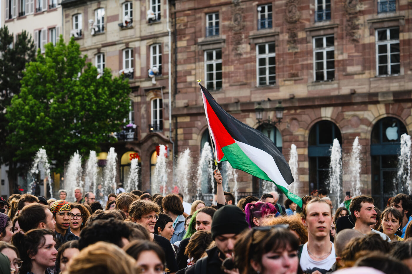 Manifestation spontanee contre l extreme droite a Strasbourg, dans l'est de la France, le 10 juin 2024. La manifestation a eu lieu au lendemain des elections europeennes alors que le rassemblement national, parti d extreme droite francais, arrive en tete.