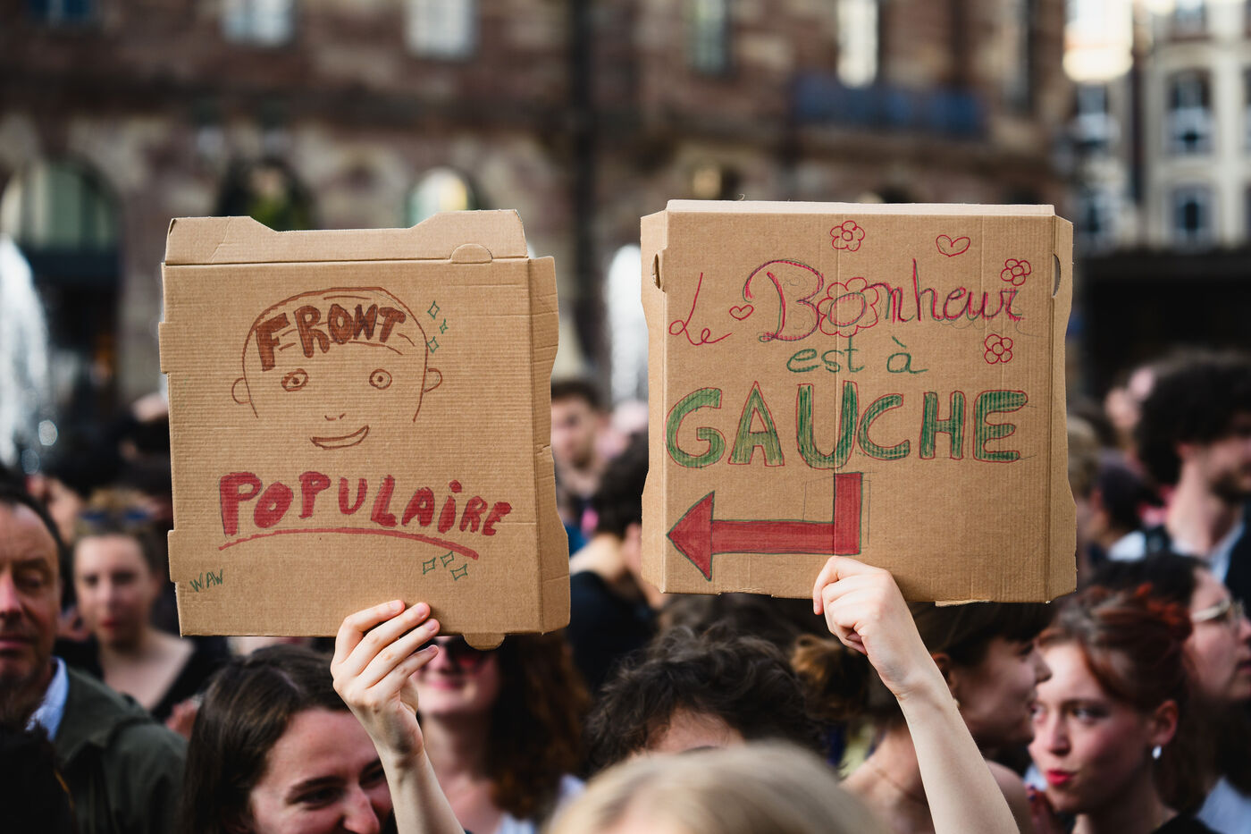Demonstration against the extreme right in Strasbourg, eastern France, on June 10, 2024. The demonstration took place in the aftermath of the European elections, with the extreme right-wing French party rassemblement national in the lead.