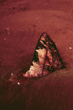 France, Sigean and surrounding area, September 2024. On the beach, a few starfish, shells, the muffled sound of our footsteps. Snatches of conversation here and there, interspersed with long silences. Here, the remains of a dolphin ooze into the sand. The scene resonates, vibrates, impacts my thoughts.