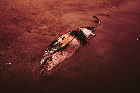 France, Sigean et alentours, Septembre 2024. Sur la plage, quelques étoiles de mer, des coquillages, le bruit feutré de nos pas. Bribes de conversations ici et là entrecoupées de longs silences. Là, une dépouille de dauphin suinte dans le sable. La scène résonne, vibre, percute mes pensées.