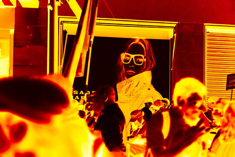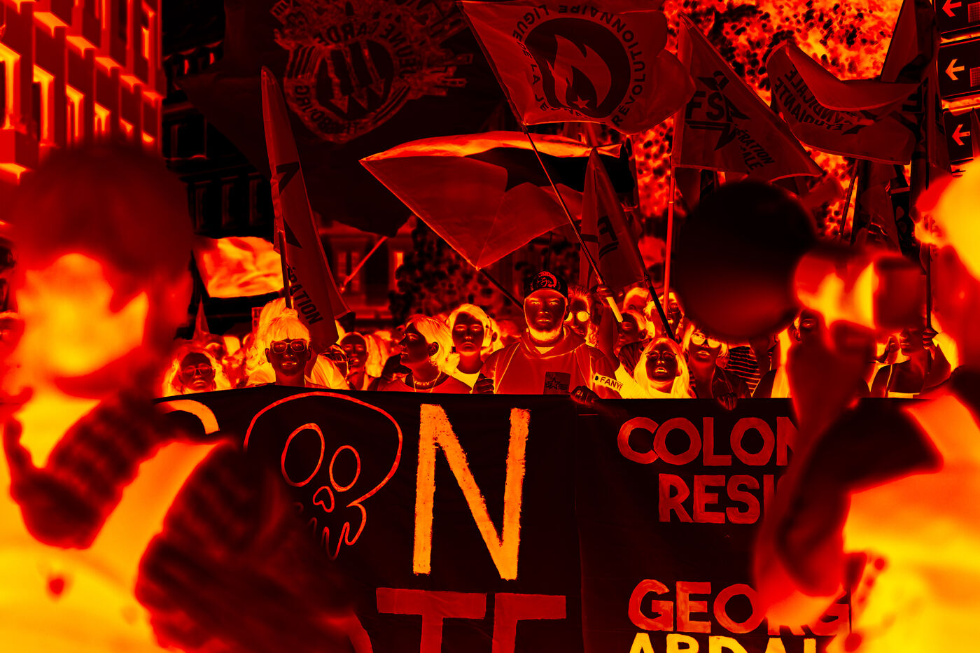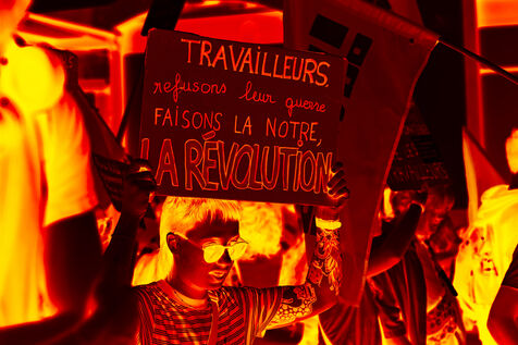 Strasbourg, May 1st 2025. On the ashes of their charred rights, the workers' cortege ignites. A blaze of anger, fueled by precarity and hope. I chose to translate this malaise into burnt, inverted images. In the negative, bodies become flames, and words appear with clarity. A muted tension, rekindled by every social setback.