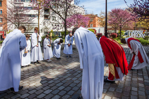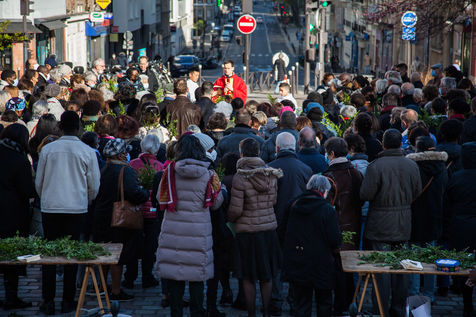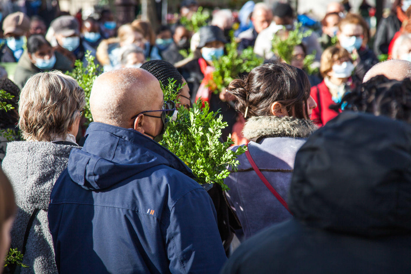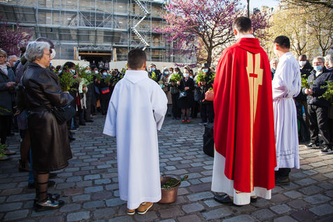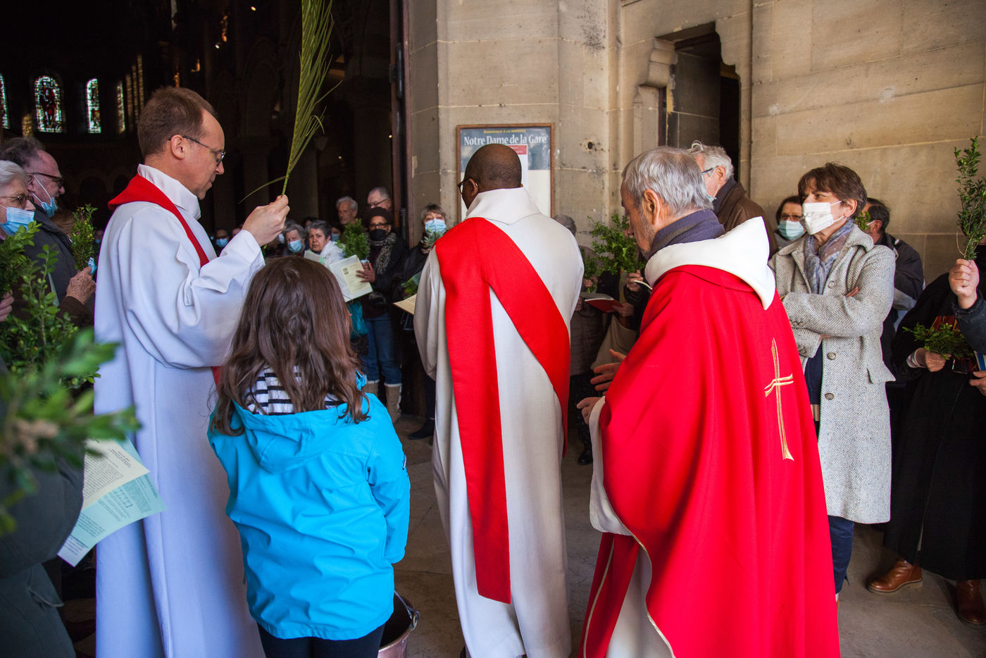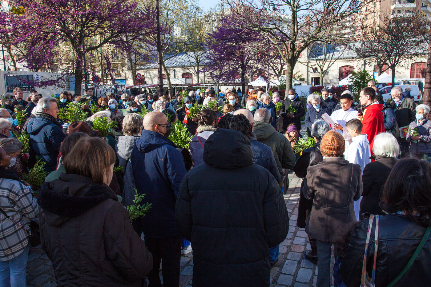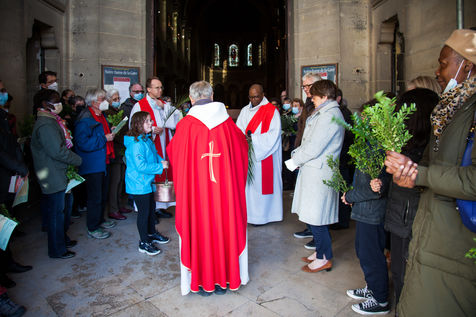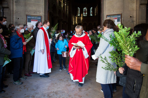 Du 10 avril au 17 avril 2021, l'Église célèbre l'entrée solennelle du Christ dans Jérusalem, son dernier repas, sa Passion, sa Mort et sa Résurrection au cours des célébrations du Jeudi saint, du Vendredi saint et de la vigile de Pâques. Pendant la messe des Rameaux, des branches de buis sont bénies en mémoire des rameaux utilisés lors de l?entrée triomphale de Jésus à Jérusalem. Le dimanche qui précède la fête de Pâques marque l'entrée dans la Semaine sainte.
