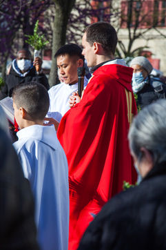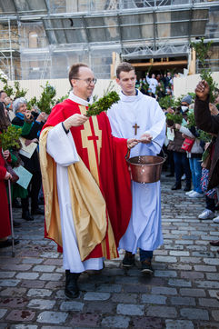 From 10 April to 17 April 2021, the Church celebrates Christ's solemn entry into Jerusalem, his Last Supper, his Passion, Death and Resurrection during the celebrations of Maundy Thursday, Good Friday and the Easter Vigil. During the Palm Sunday Mass, boxwood branches are blessed in memory of the branches used during Jesus' triumphal entry into Jerusalem. The Sunday before Easter marks the beginning of Holy Week.
