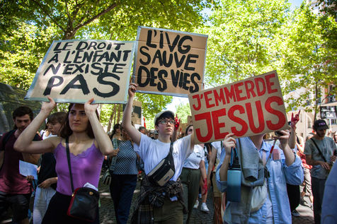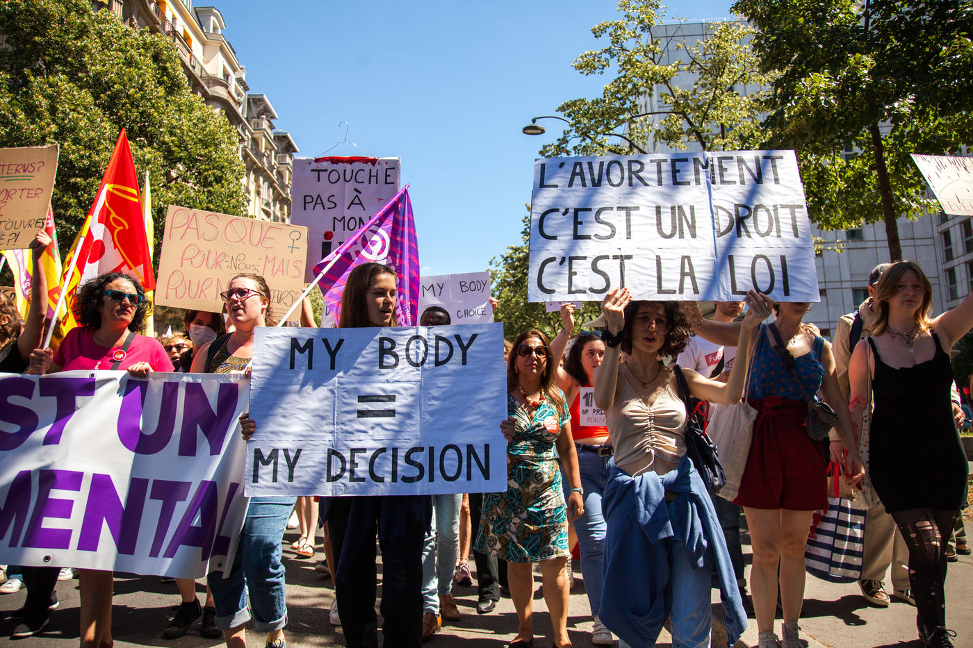 Le samedi 2 juillet 2022, des femmes et des hommes ont manifesté en solidarité avec les Etats-Unis pour le droit à l'avortement et à l'IVG contre la décision de la très conservatrice Cour suprême des Etats-Unis qui a révoqué ce droit le 24 juin dernier. Cette révocation elle renvoie les États-Unis à la situation en vigueur avant l'arrêt emblématique pris en 1973 : chaque État sera libre d'autoriser l'avortement ou non. La manifestation à Paris avait également pour objet d'inscrire le droit à l'IVG dans la Constitution Française.