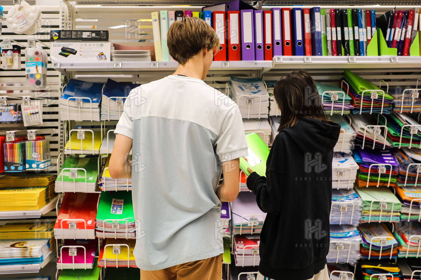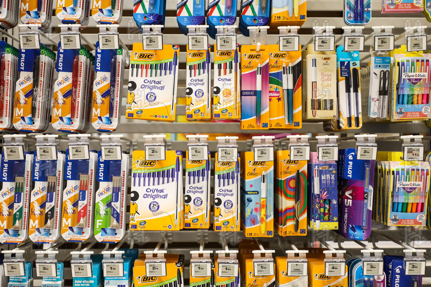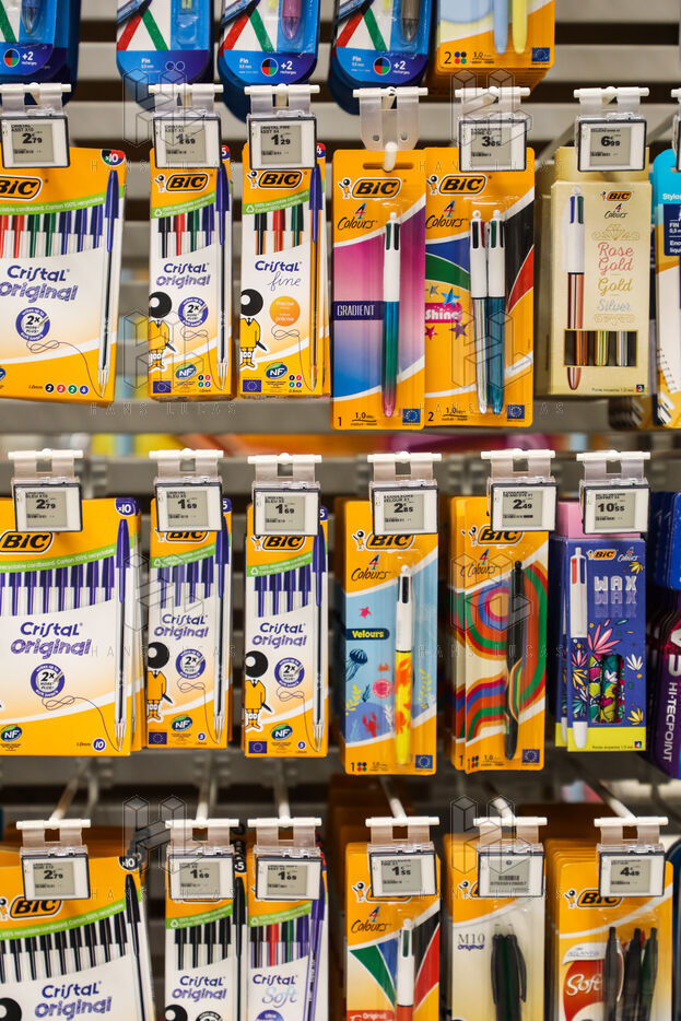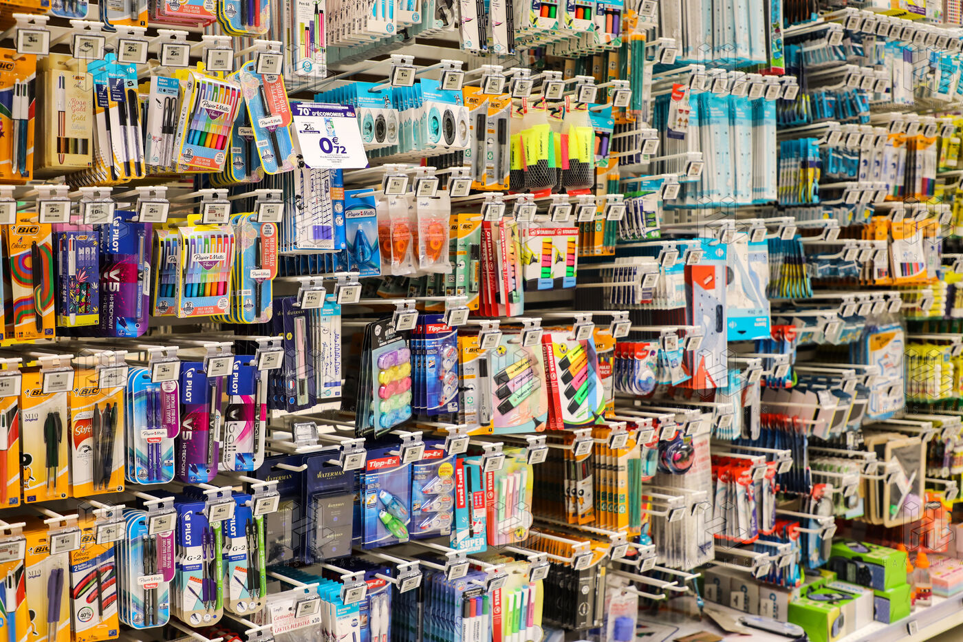 A section of school supplies for the start of the school year in September in a supermarket in the Aude, Côte du midi.