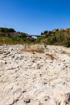 Le lit asséché de la rivière la Berre de Portel-des-Corbières à Portel-des-Corbières dans l'Aude en août 2022. Les épisodes de sécheresse sont de plus en plus fréquents en France et dans le monde. Certaines rivières se retrouvent sans eau.