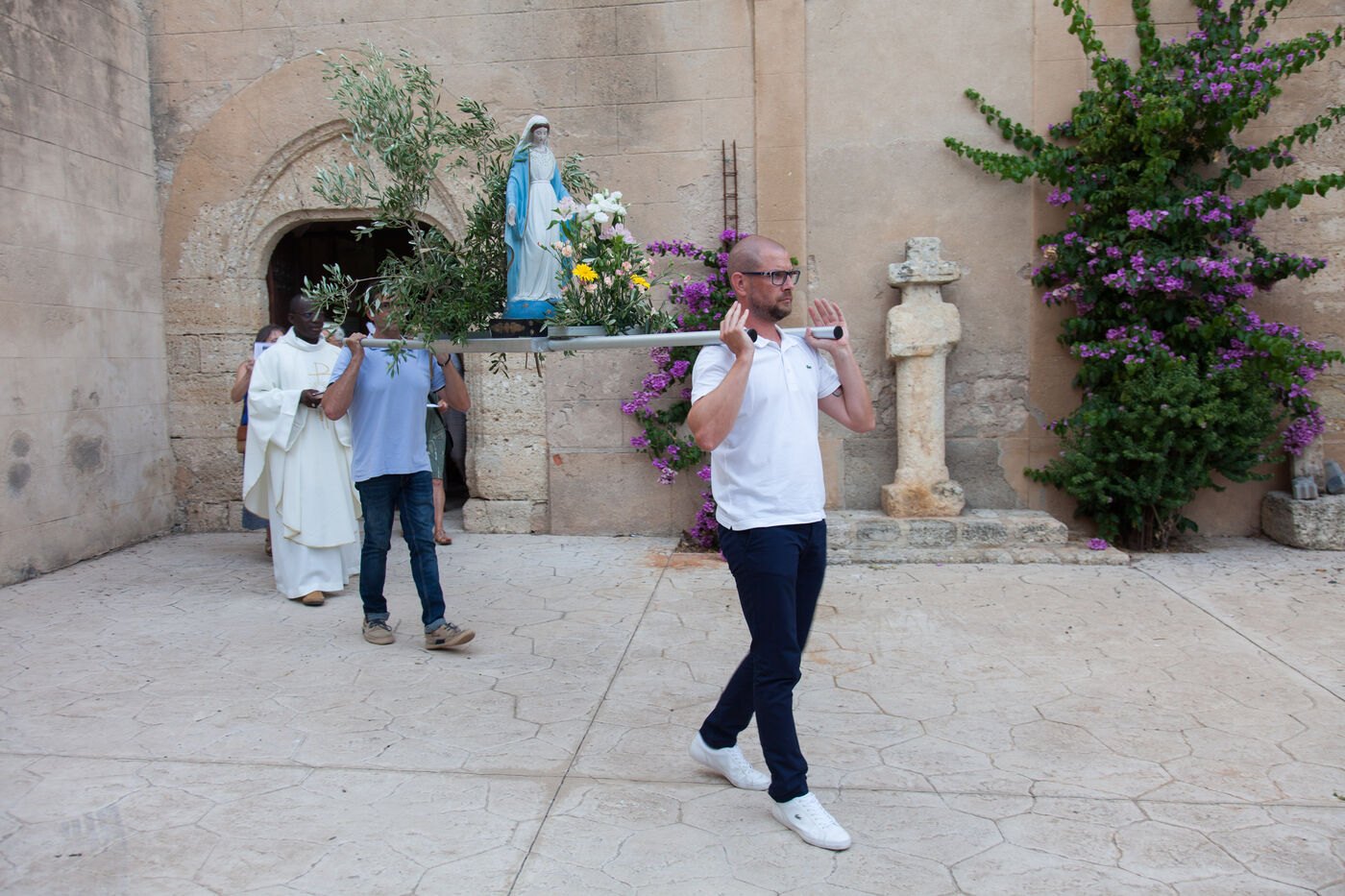 The Assumption, called Dormition in Eastern tradition, is the Christian belief that the Virgin Mary, mother of Jesus, at the end of her earthly life, entered directly into the glory of God, in other words, "ascended into heaven". This belief has no scriptural basis, but is in line with a long-standing tradition in both Eastern and Western churches, and has been celebrated liturgically since the 7th century. In the Catholic Church, it was defined as dogma. In the Catholic Church, the Assumption is celebrated liturgically on August 15, often accompanied by processions.