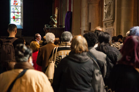 In the Christian tradition, the Way of the Cross (Via crucis) is a private or communal devotional act. By commemorating the Passion of Christ through the evocation of fourteen particular moments (some of which are traditional and not recorded in biblical writings), the faithful wish to receive the grace of intense communion with the sufferings of Christ, the Savior of mankind. These ceremonies are frequent during Lent, and especially on Good Friday. The ceremony sometimes involves a procession, interrupted by preaching, meditation and prayer, performed while standing before fourteen pictures, crucifixes or other symbols arranged either around the church or an adjoining area (usually a pathway reproducing the ascent to Calvary), or in the church itself.