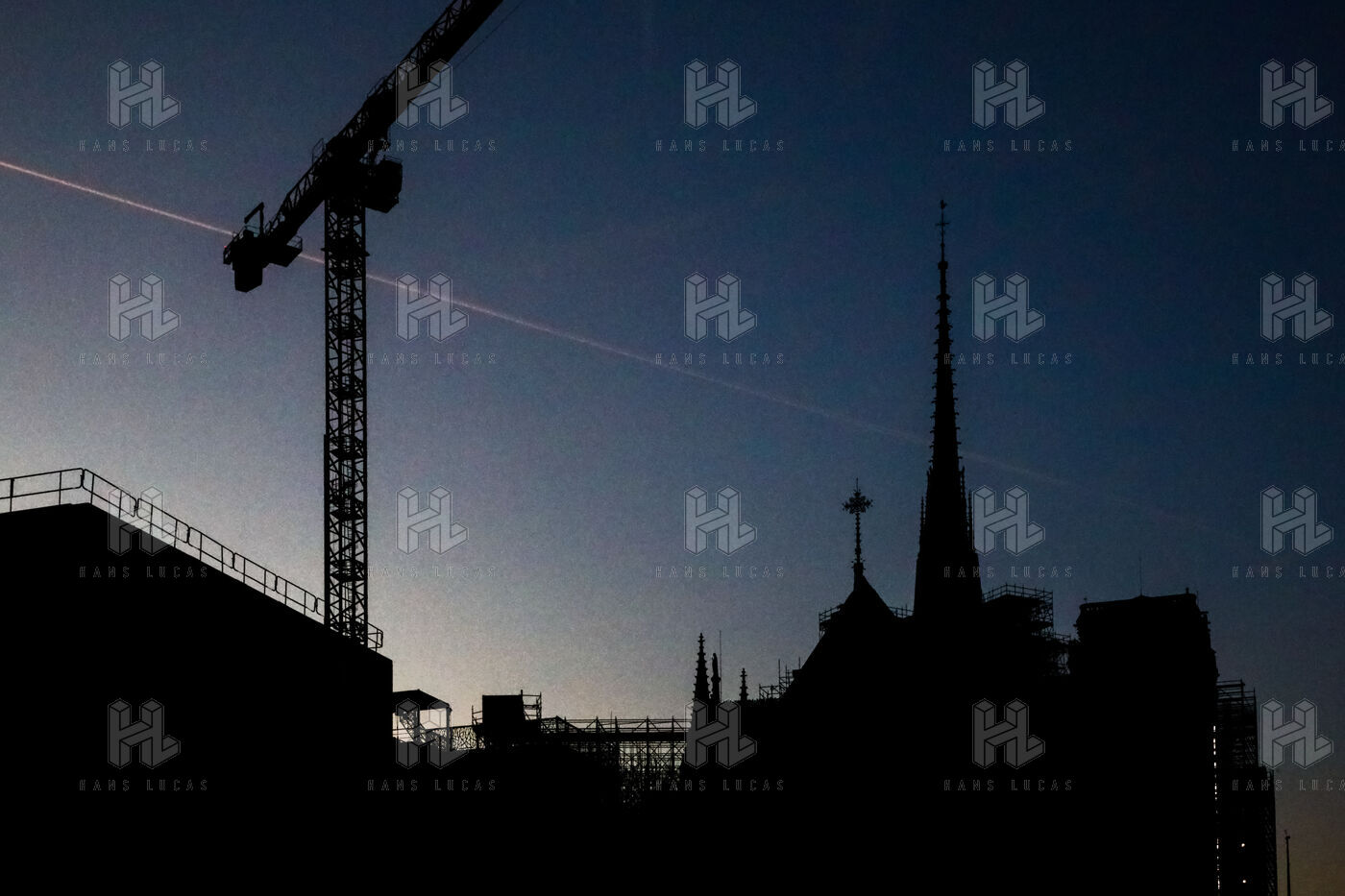 Reconstruction work on Notre-Dame de Paris cathedral, following the fire of April 15, 2019. Work on the spire and timber frame.