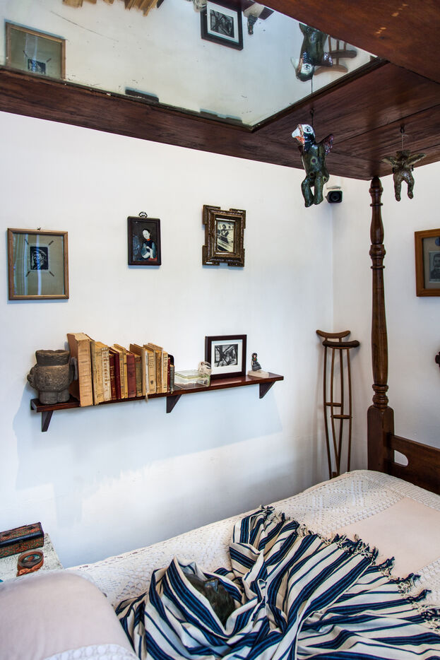 Portrait et objets de Magdalena Frida Carmen Kahlo Calderón1, simplement appelée Frida Kahlo, artiste peintre mexicaine, née le 6 juillet 1907 à Coyoacán (Mexico) et morte au même endroit le 13 juillet 1954.
