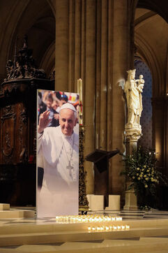 À l’occasion du décès du pape François, la cathédrale Notre-Dame de Paris a rendu hommage au souverain pontife avec plusieurs cérémonies : les cloches ont sonné 88 fois à 11h, suivies de deux messes à 12h et 18h, d’un chapelet à 19h, puis d’une veillée de prière de 20h à minuit. Les fidèles ont pu se recueillir et prier pour le repos de son âme dans un climat de grande émotion