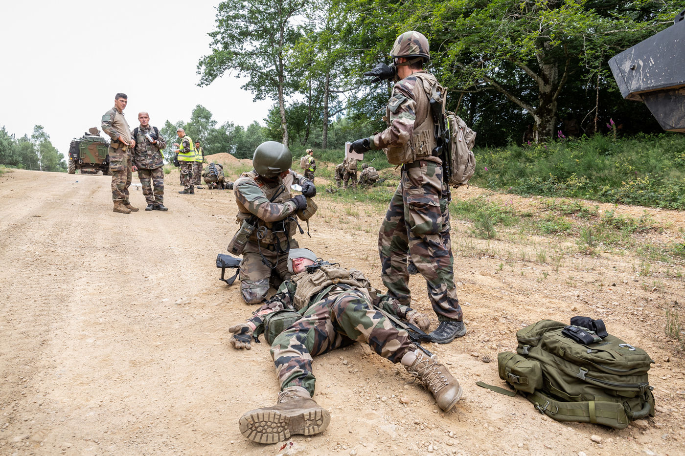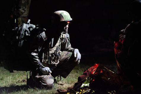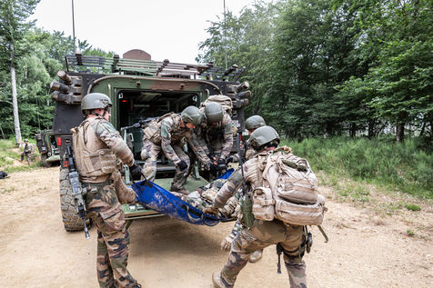 Training on the medical care of the wounded during an external operation of the French Army. The French Army Medical Corps is present during these trainings as well as the combat companies ready to be projected on the theatres of war.