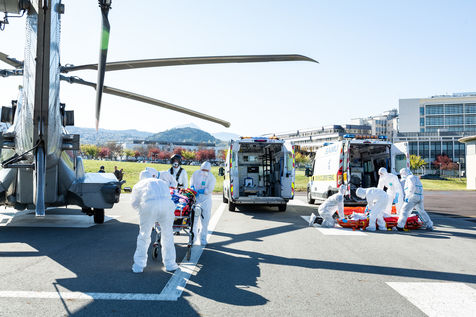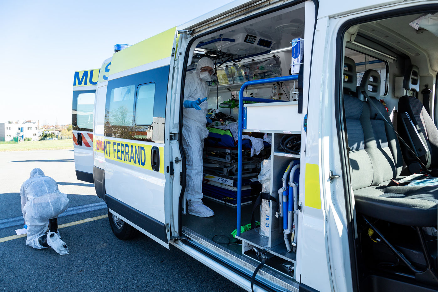 La mission RESILIENCE de l'Armée Française, met à contribution sa force aérienne pour realiser des transferts de patients entre les hôpitaux parisiens et les structures de province. Les Patients sont arrivés à Clermont-Ferrand avant d'être transférés dans les services de réanimations.