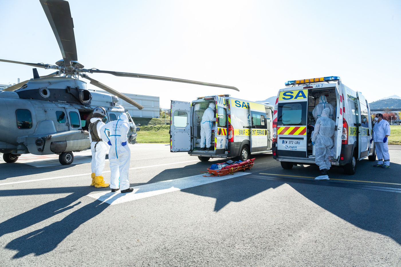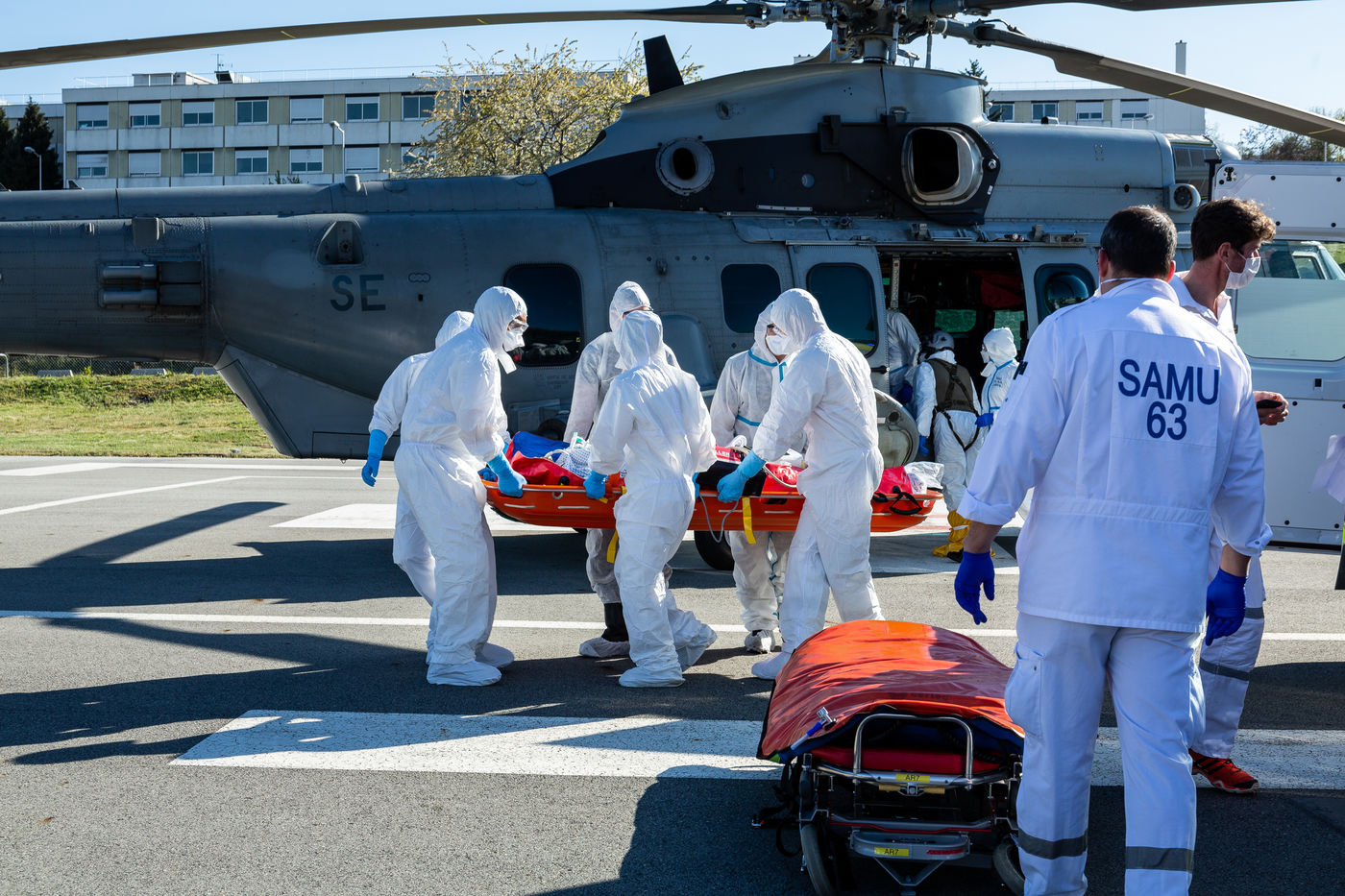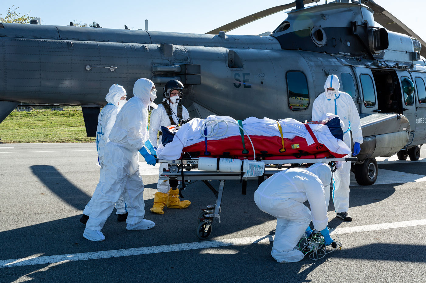 The RESILIENCE mission of the French Army, uses its air force to carry out patient transfers between Parisian hospitals and provincial structures. Patients arrived in Clermont-Ferrand before being transferred to the intensive care units.