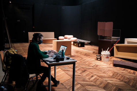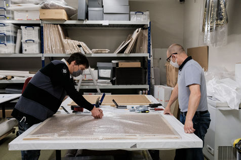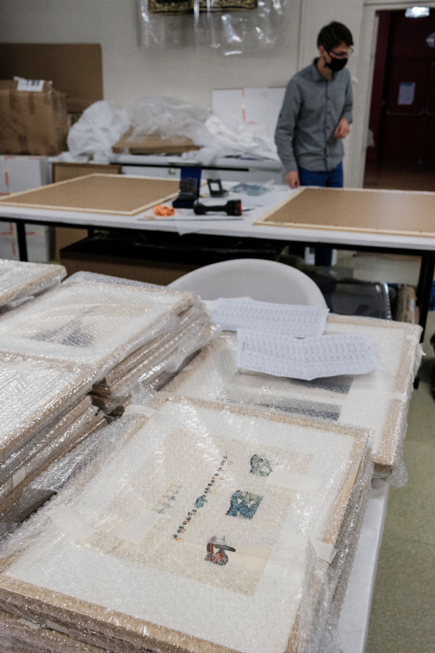 For the time being, the teams are busy putting the works in frames, designing the room's scenography and setting up the elements of the visit.