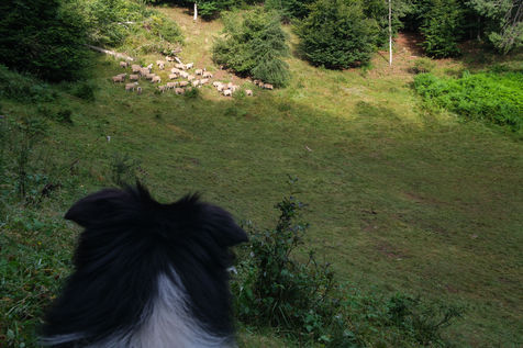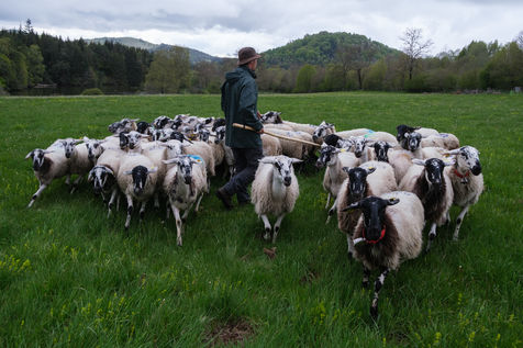 Esteban with Totem, his Border-collie, watch over this herd of Rava breed. This rustic and local breed is ideal for this mountain environment.