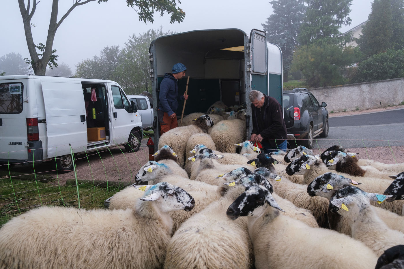 These animals belong to a local agricultural high school. Esteban is in charge of these sheep during his summer vacation. Throughout this period, a close monitoring will take place to limit the injuries and diseases of the animals. Following the passage of a ram, a morning of echography is organized to know the number of full ewes. Once back in the sheepfold, the lambing season will start.