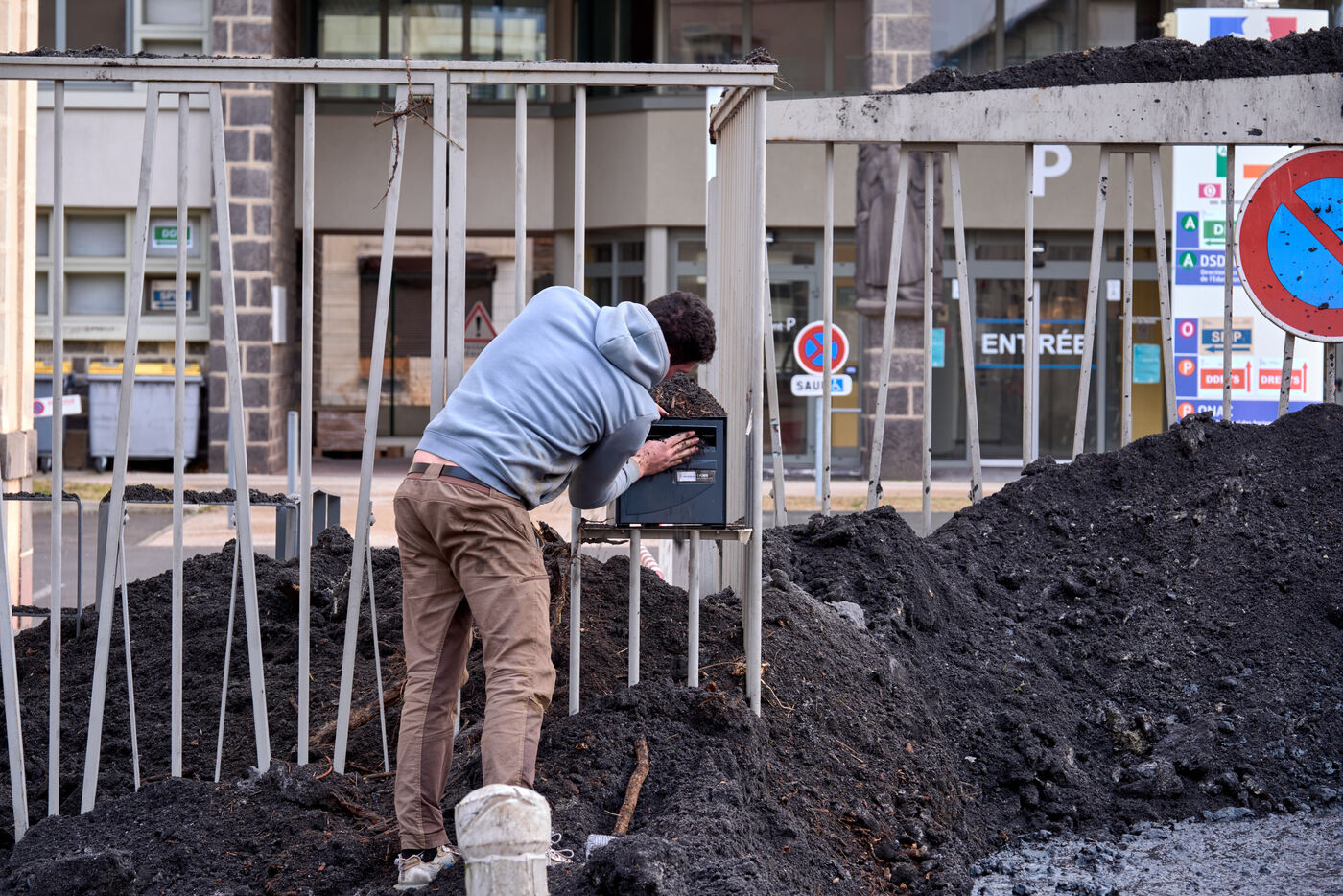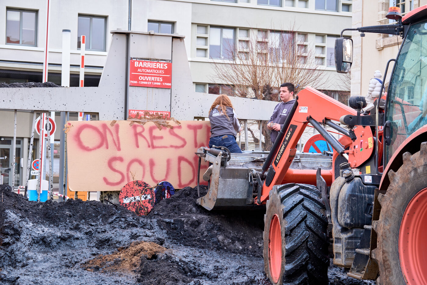 Targeted actions by farmers continue in Clermont Ferrand: welding the entrance gate to the Direction departementale des territoires, dumping skips of ash and spraying the facade of a supermarket with slurry and straw.