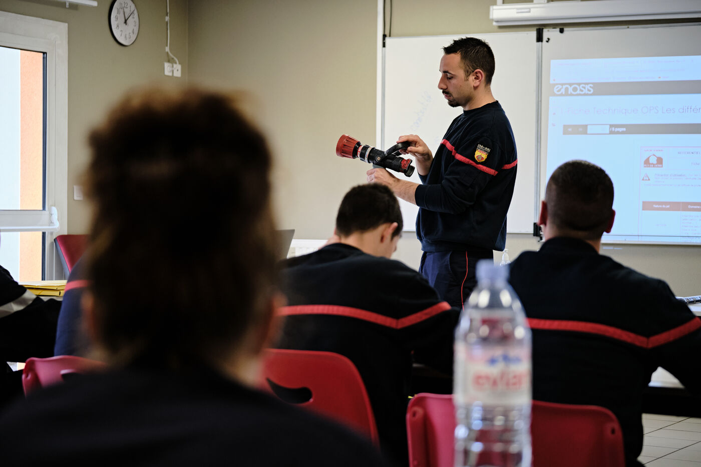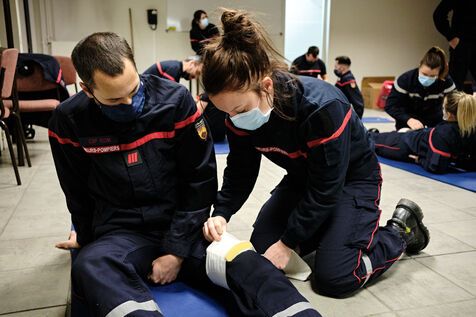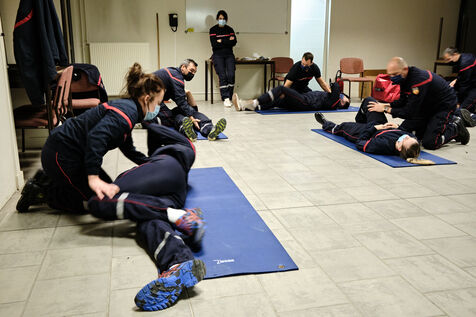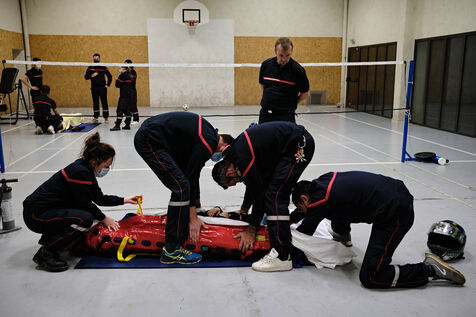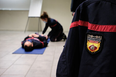 Following a physical and sports selection process, future volunteer firefighters begin their training. Once they've passed the medical examination and been fitted for their uniforms, firefighters learn the rudiments of first aid and firefighting. Once they've completed their training, they'll be fit to ride in any truck on duty.
