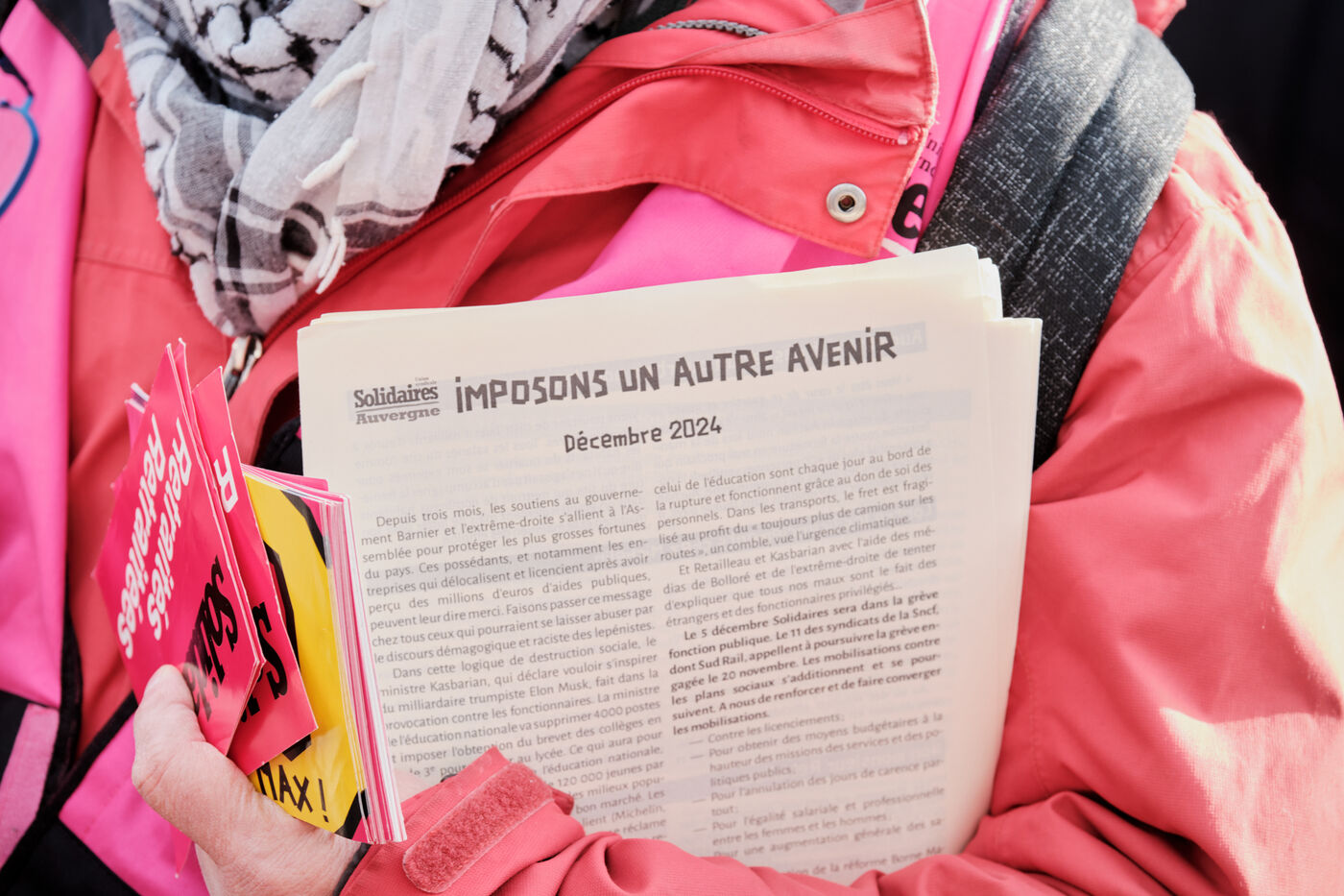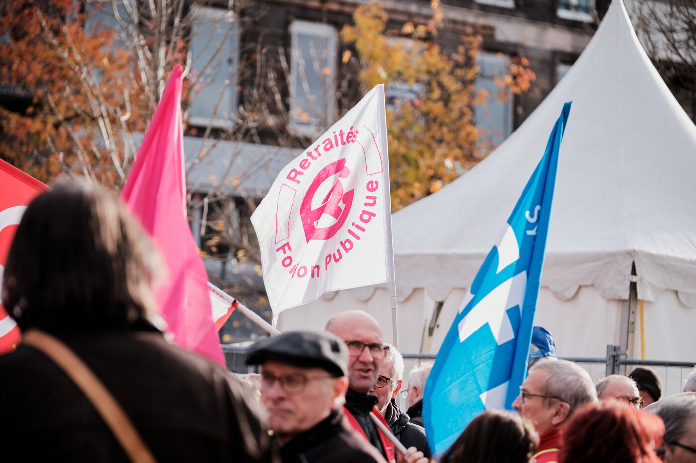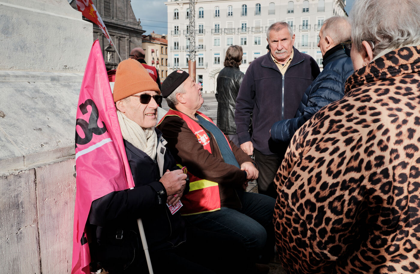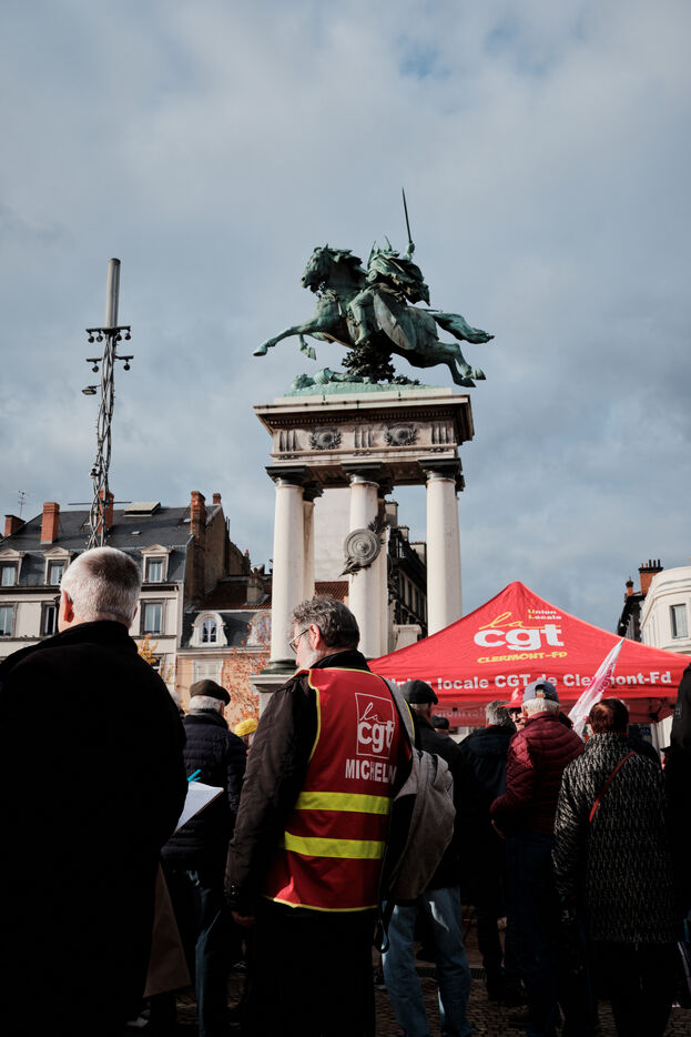 A l appel de 10 organisations syndicales, des retraites du Puy de Dame se sont réunis place de Jaude a Clermont Ferrand. C est a cote du marche de Noel clermontois qu ils se sont réunis pour demander une revalorisation de leurs pensions du montant de l inflation au 01 Janvier 2025. Les retraites exigent aussi le rattrapage des pertes du pouvoir d achat subies depuis 2017 ainsi qu un niveau de pension minimum égal au SMIC.