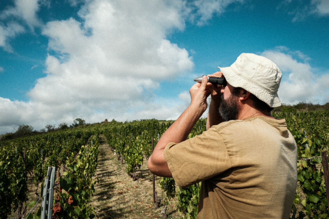 It was on the sunny morning of September 2, 2025, that Stéphane Bonjean took a tour of his vineyards. Located in the Châteauguay AOC wine region, the Auvergne winemaker walked through his vineyards to check on their condition. After a heatwave, a period of heavy rain allowed the grapes to soak up enough water before harvest. After a visual inspection of the bunches, the alcohol concentration was checked using an alcohol refractometer.