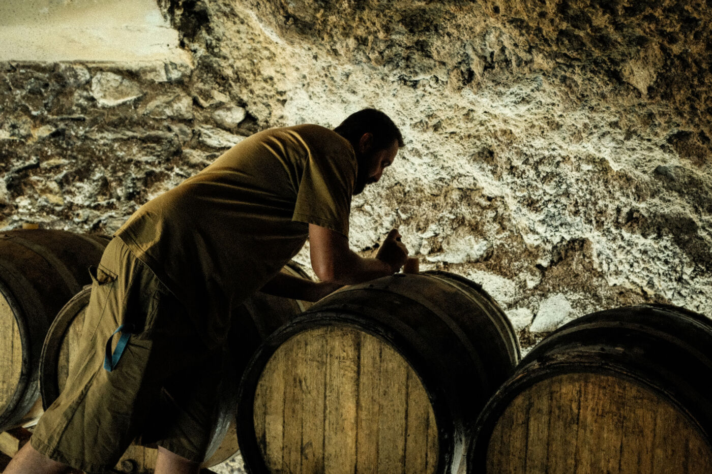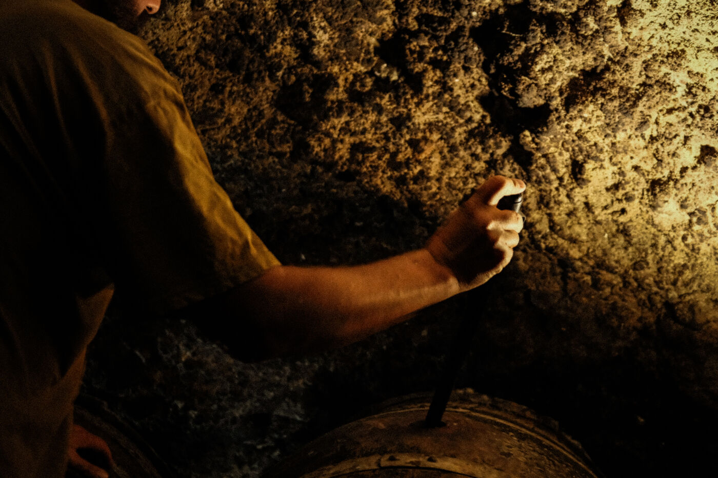 De retour au chai, une fois le tour des vignes fait, le vigneron va contrôler son vin reposant dans ses fûts d'élevage sous le village de Blanzat. Ces caves atypiques, sont creusées dans la coulée de lave descendant de la chaîne des Puys à plusieurs kilomètres de là.