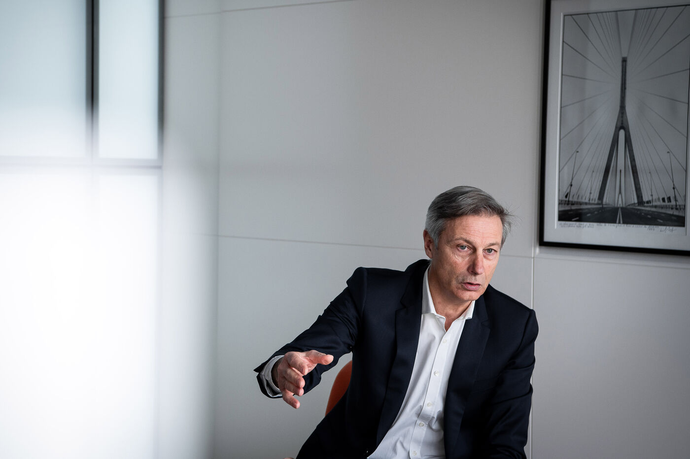 This series is a commissioned work that I am doing for a weekly newspaper in Lyon; the interviews are published in the form of a large witness each week. I have an hour, sometimes a few minutes to imagine and describe what I see. I discover the place at the last moment during the meeting, and in haste I search for the perfect light and the lines that will reveal subject and setting in a delicate harmony.