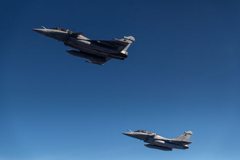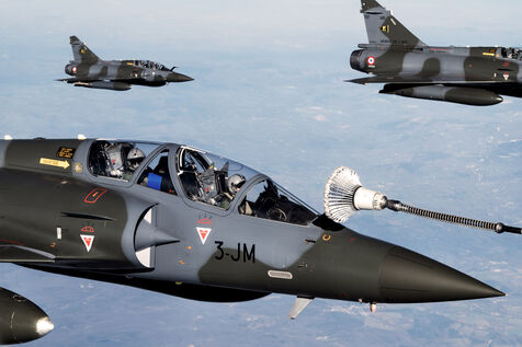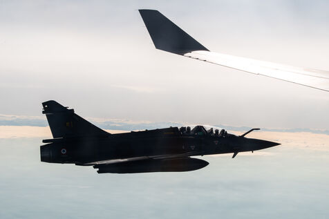 Refueling in flight during the Orion23 exercise, Istres Air Base 125. Two-seater Rafale and Mirage 2000 fighters from the French Air Force and Space Ministry flew for three hours around this imposing A330 MRTT for an extreme technicality refueling exercise.