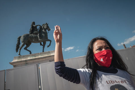 Gathering of the Burmese community in France at Place Bellecourt in Lyon, as at the end of "Army Day" in Myanmar, the military killed more than 100 people, including children, bringing the total to over 400.