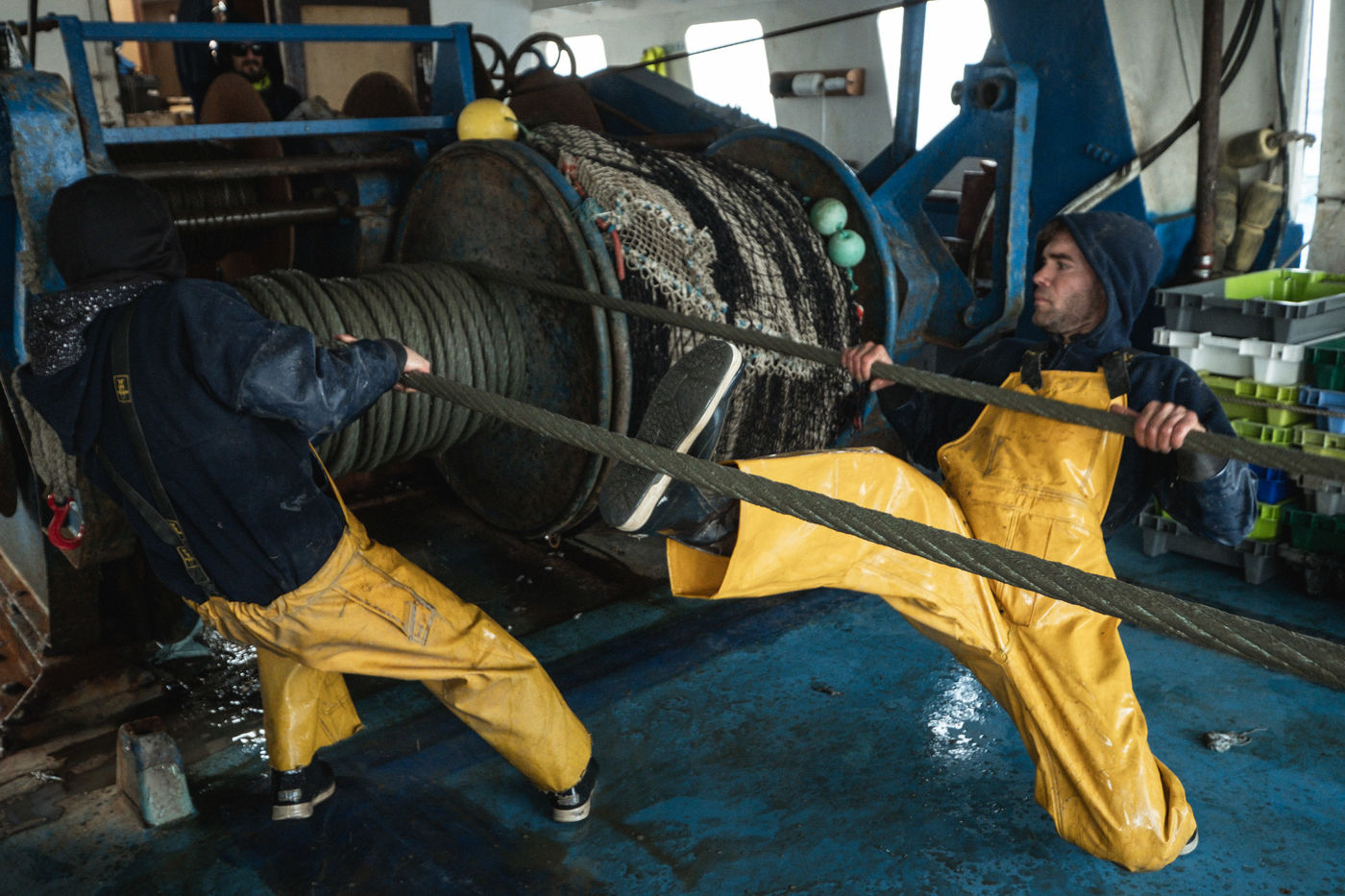 Port of Sète, 2:30 am. Christian, 32 years old, is preparing his boat for departure, while waiting for his two colleagues: Clément, who became a fisherman only a few months ago, and Lucas, 18 years old and still at the Lycée de la Mer. This boat from the 1980s, which Christian sailed as a child with his father and grandfather, is now his own. The trawler is a second home for this particularly young crew, in which they spend up to 12 hours a day, 6 days a week, and in which, in addition to a net, there are mattresses, a kitchen and toothbrushes. As the lights of the city fade, Christian enjoys the sunrise alone, the two sailors rest before embarking on a succession of explosive ballets, to the rhythm of the gulls' cries. Over the course of a day, we embark on the daily life of a crew of young sailors from Sète.