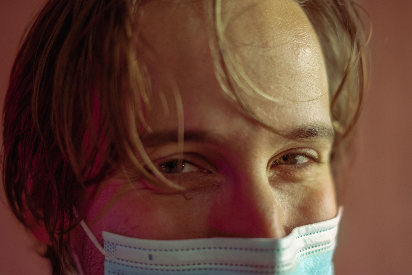 Panel d'expressions faciales avec le masque, par le comédien Leo Lebesgue.