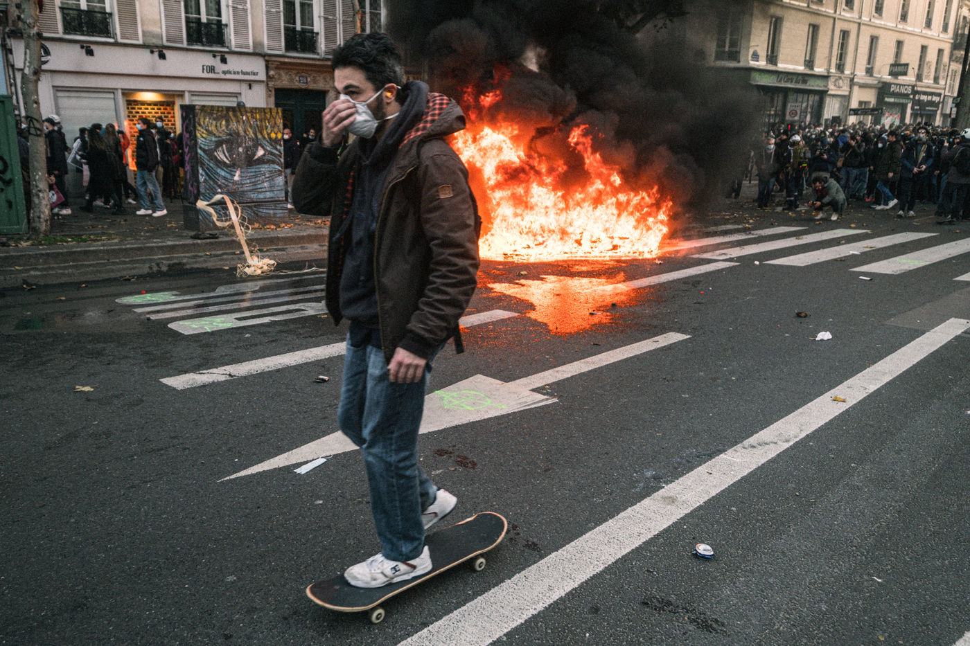 Paris, 2020-2021. A state of health emergency is declared! Wearing masks, repeated lockdowns, curfews at 9pm and 6pm, closure of businesses "not essential" to the economy. At the height of the pandemic and despite numerous mobilisations, the government passed the Global Security Law, which threatens the freedom to inform and opens the door to mass surveillance. All demonstrations are now controlled, thanks to an increasingly harsh policing doctrine and almost unfailing support from the top of the state. Peacekeepers are more than ever forces of order.
